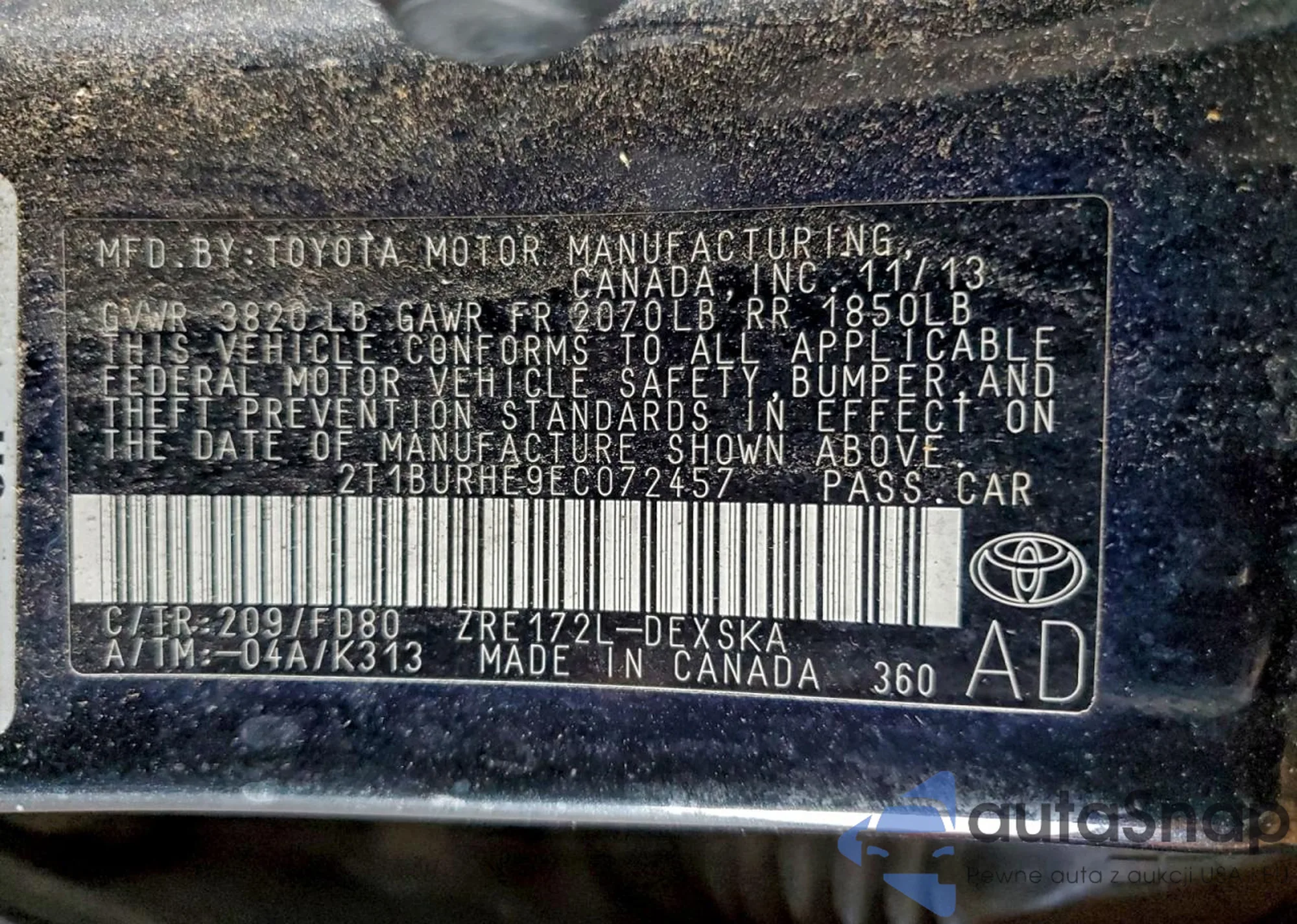 LOT: 81236305 VIN: 2T1BURHE9EC072457