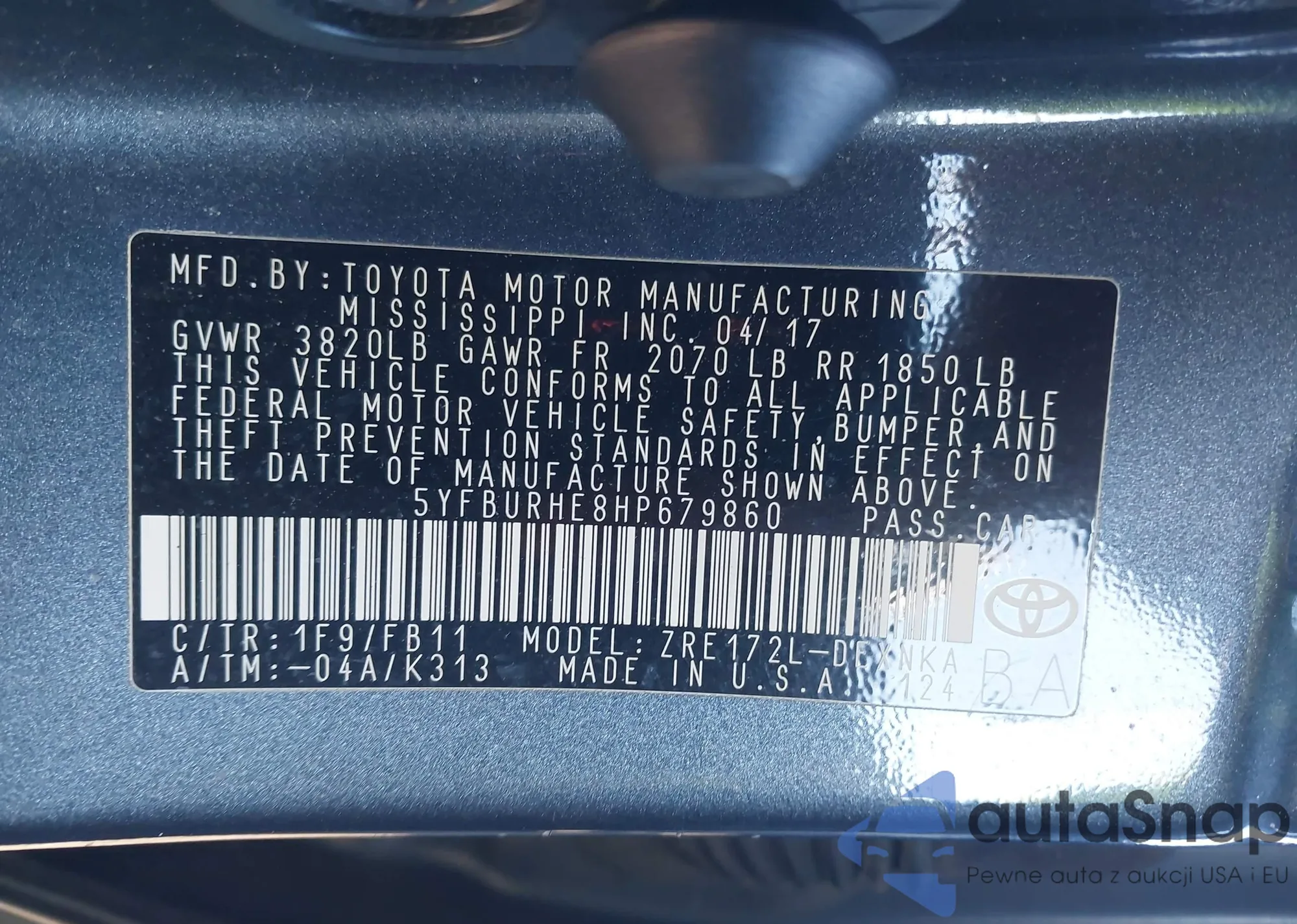 • VIN 5YFBURHE8HP679860
