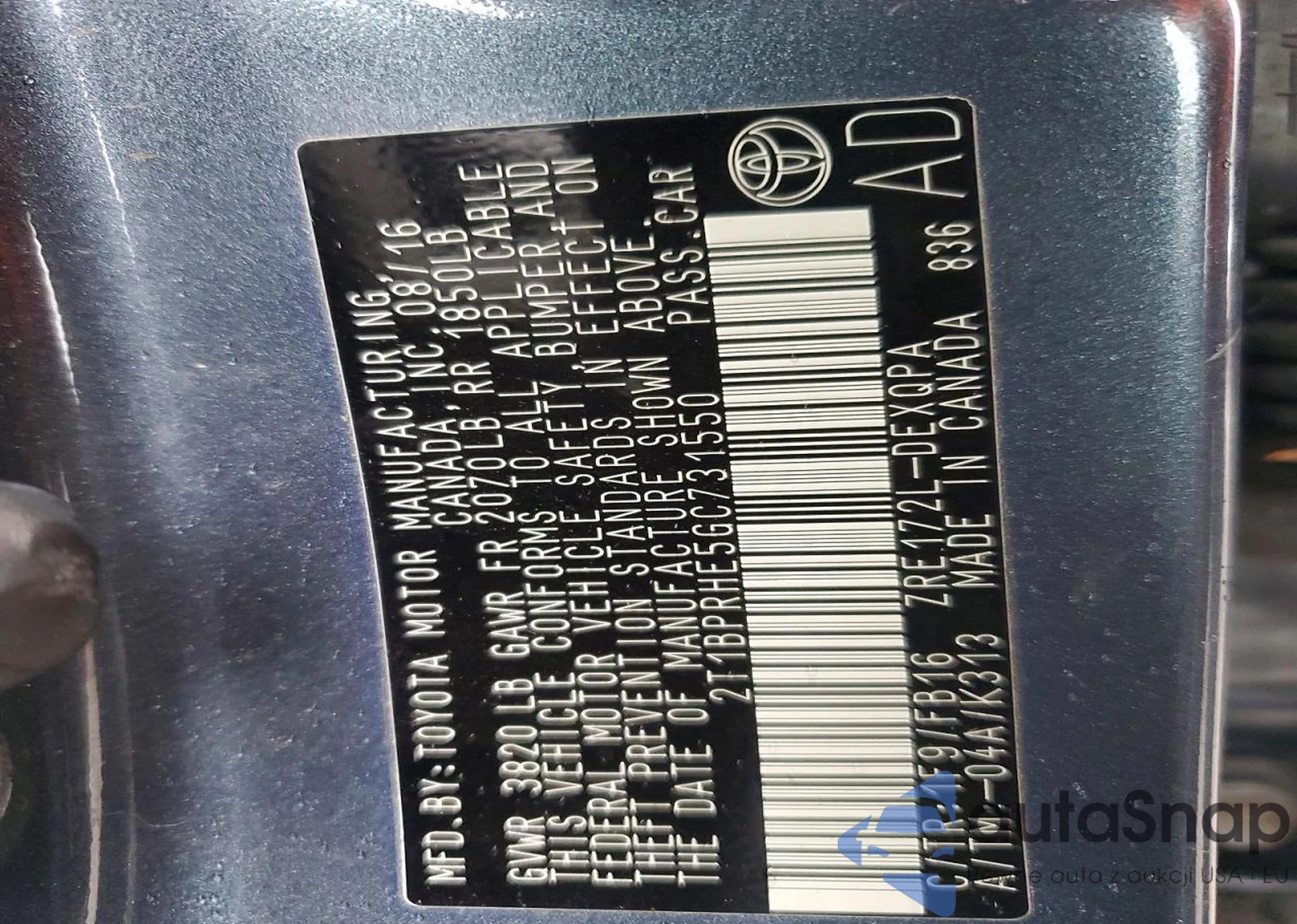 • VIN 2T1BPRHE5GC731550