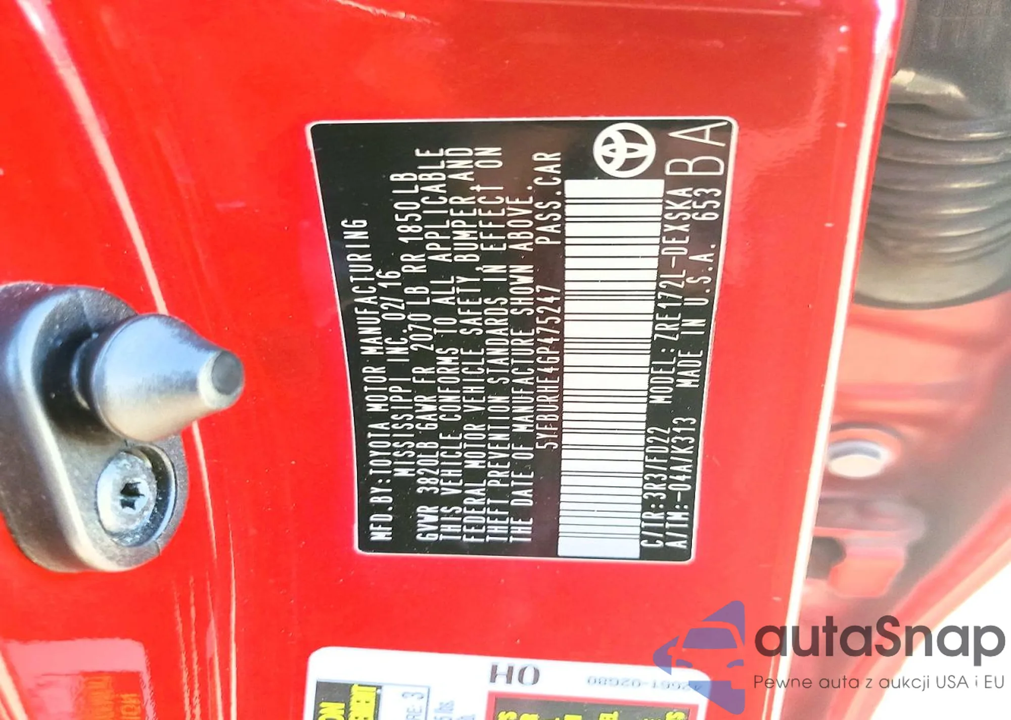 • VIN 5YFBURHE4GP475247