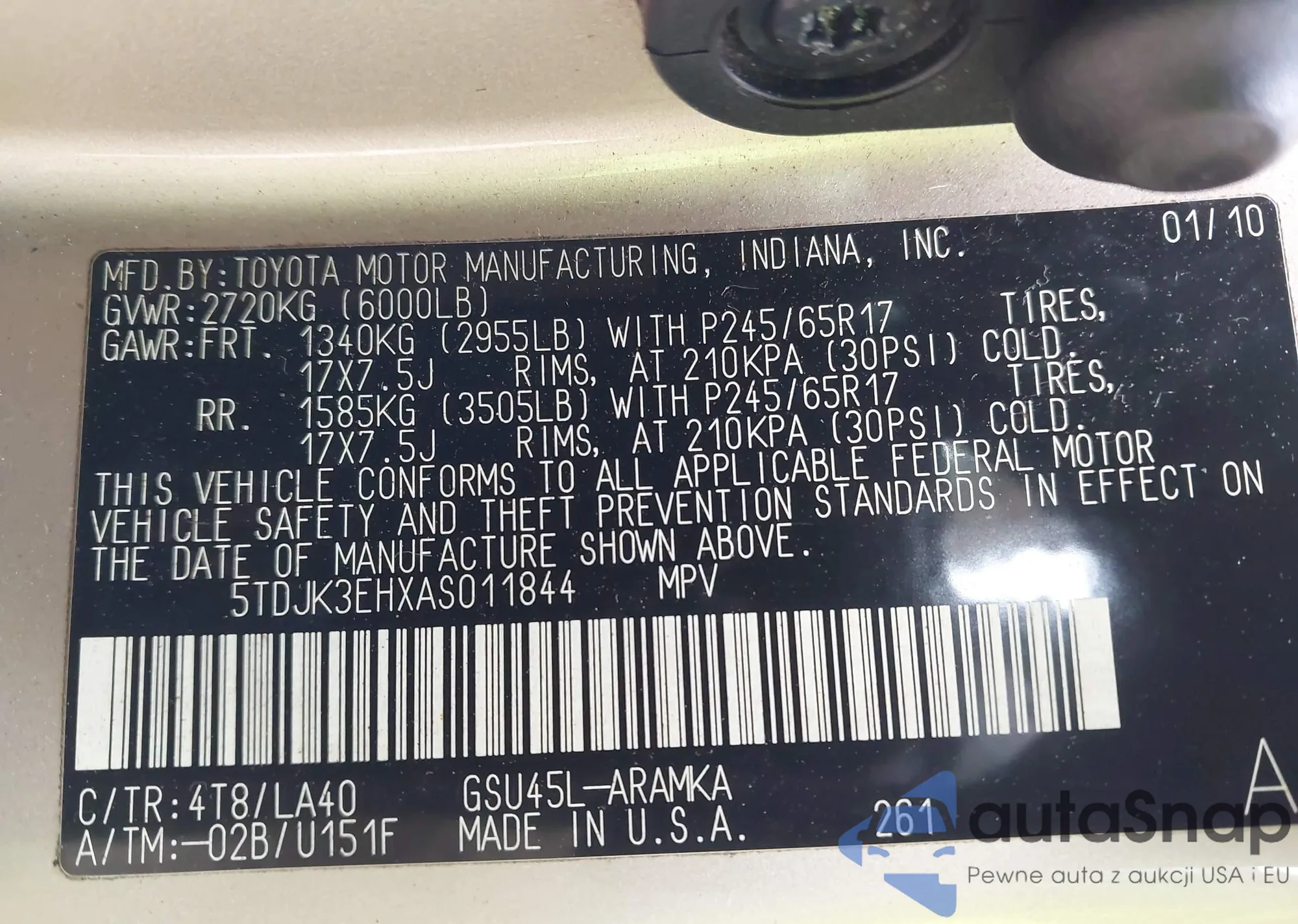 LOT: 44191818 VIN: 5TDJK3EHXAS011844