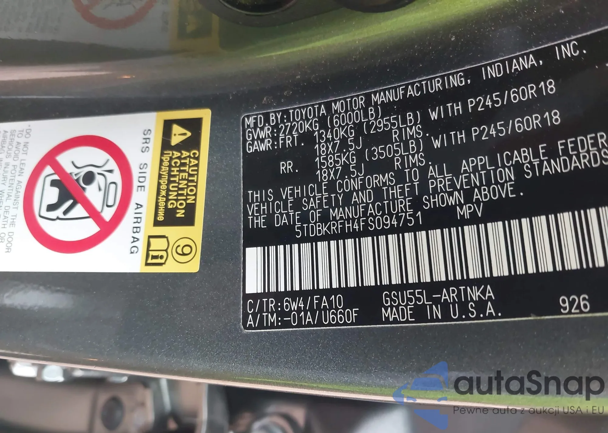 LOT: 43954593 VIN: 5TDBKRFH4FS094751