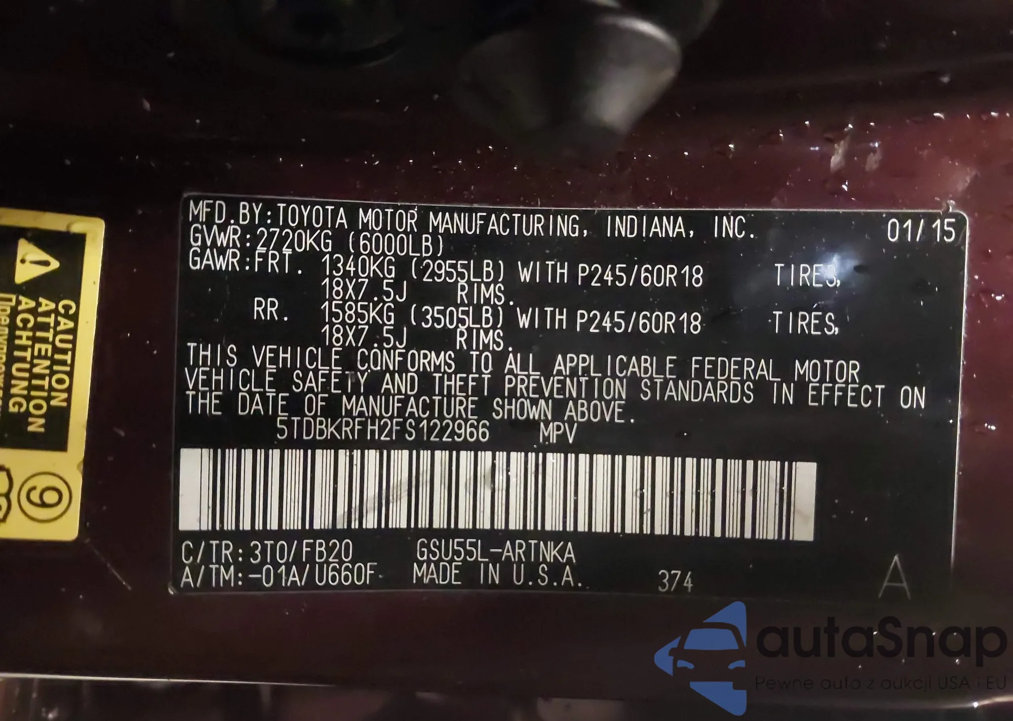 • VIN 5TDBKRFH2FS122966