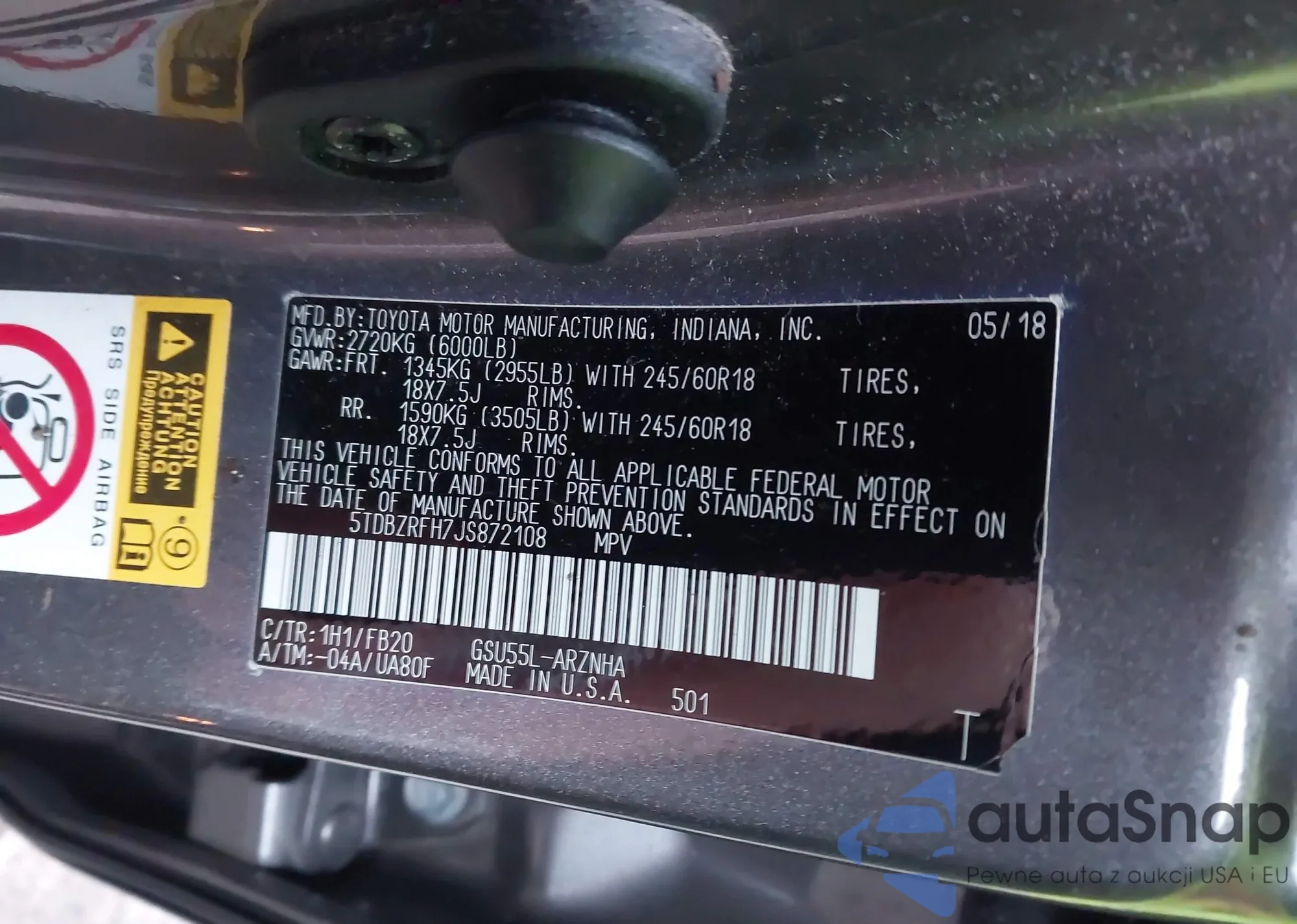 • VIN 5TDBZRFH7JS872108