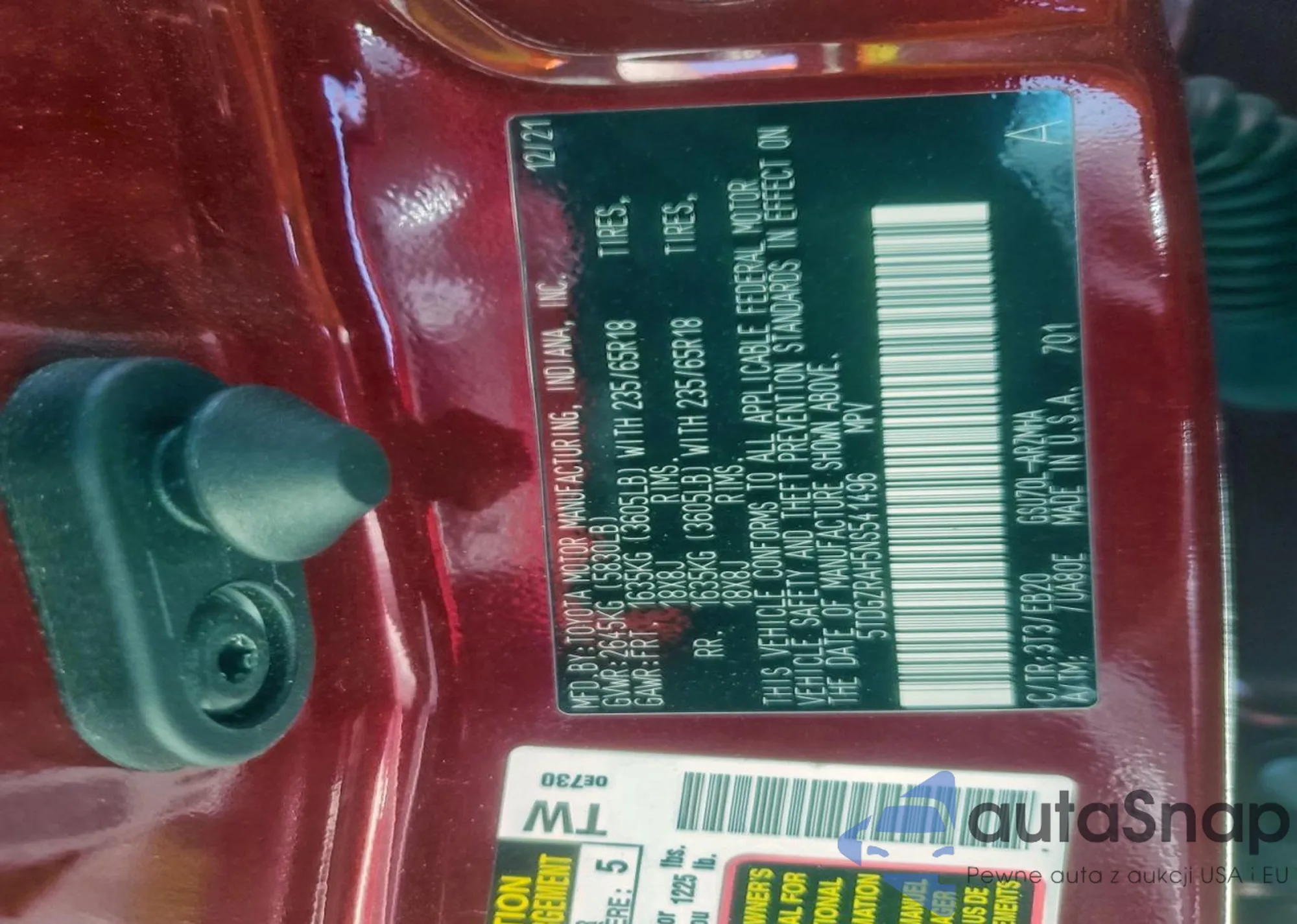 • VIN 5TDGZRAH5NS541496