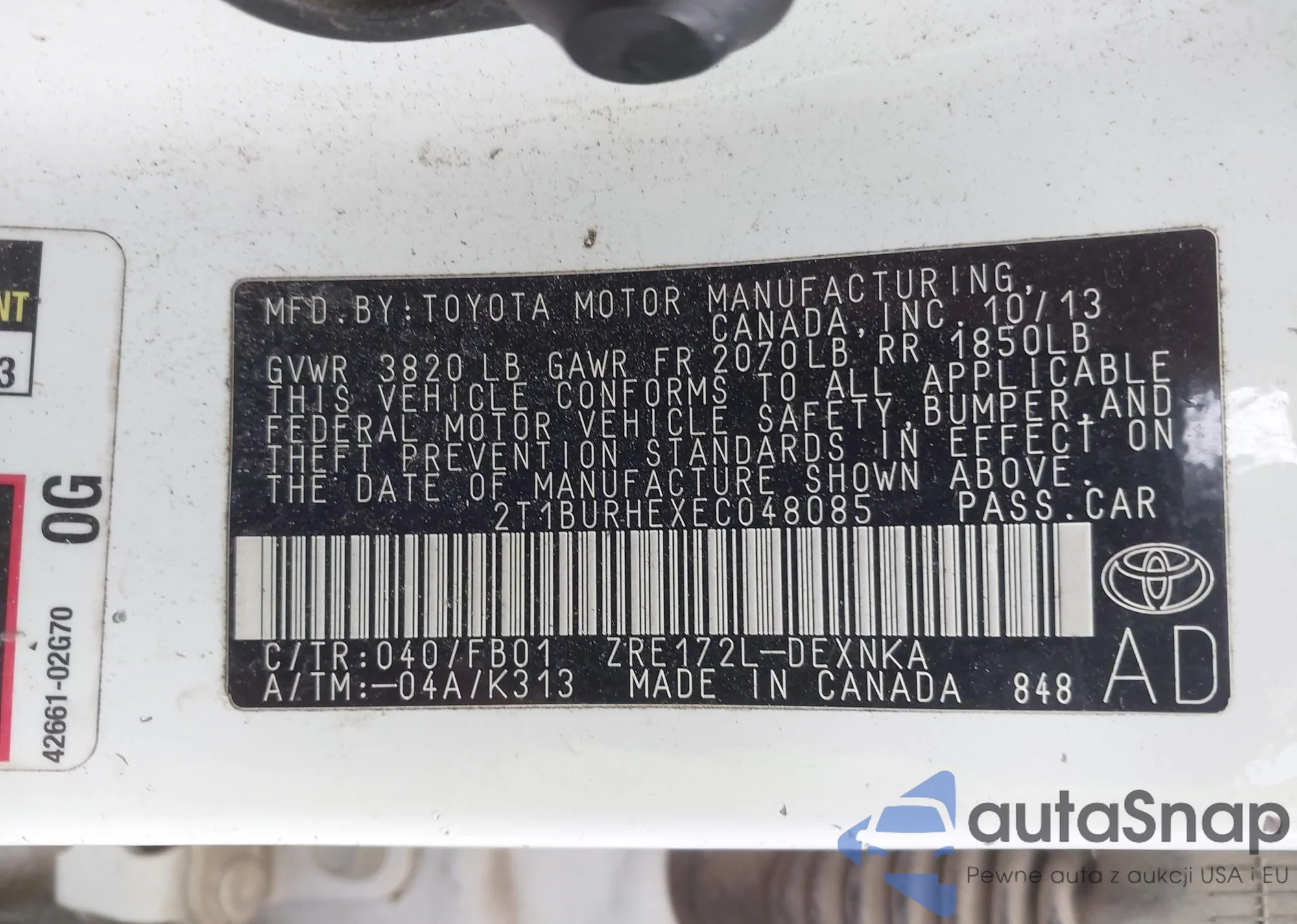 • VIN 2T1BURHEXEC048085