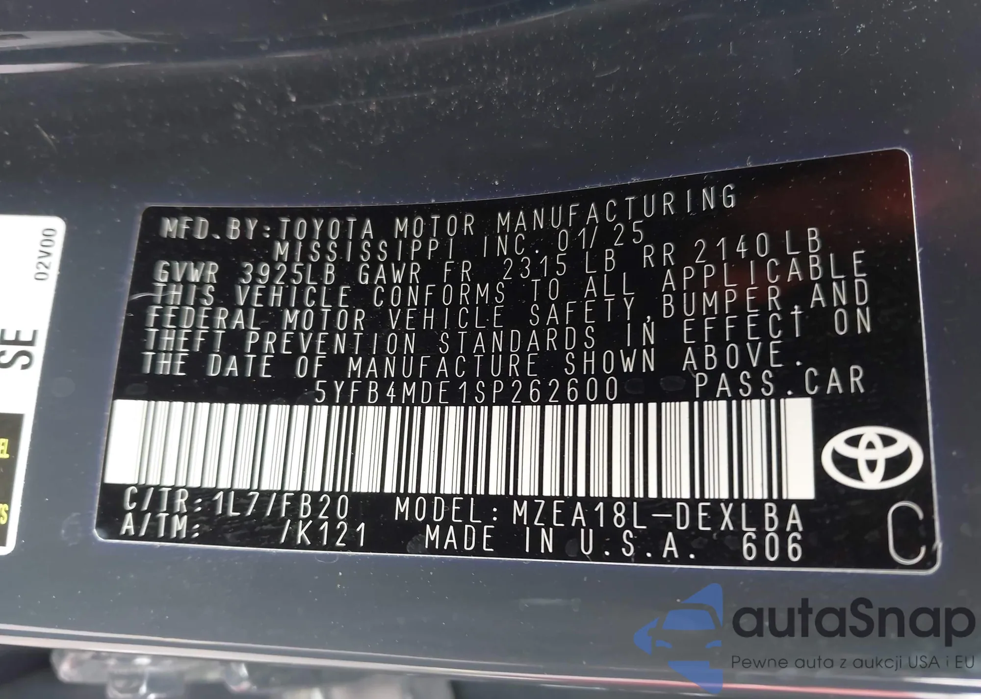 • VIN 5YFB4MDE1SP262600