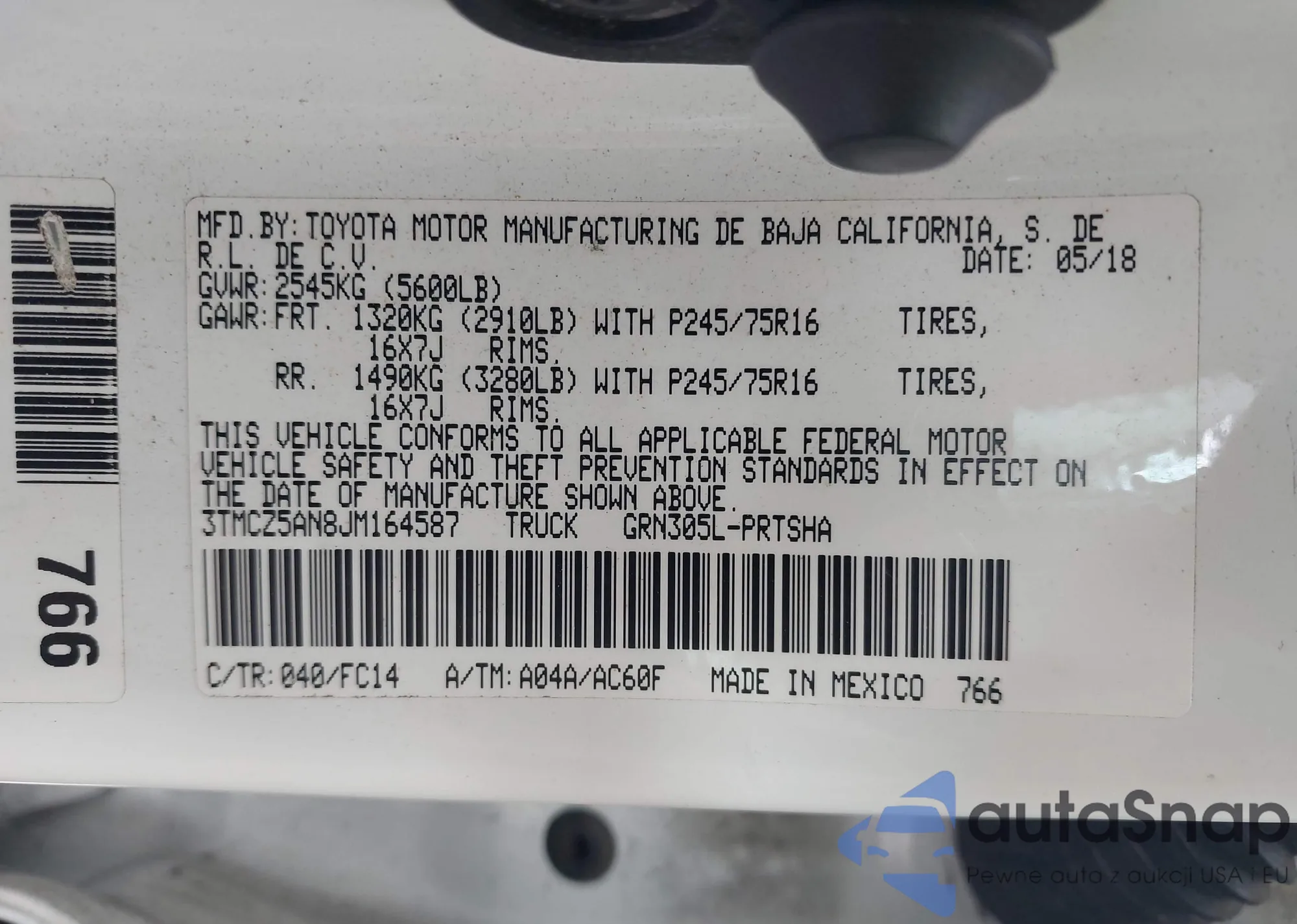 • VIN 3TMCZ5AN8JM164587
