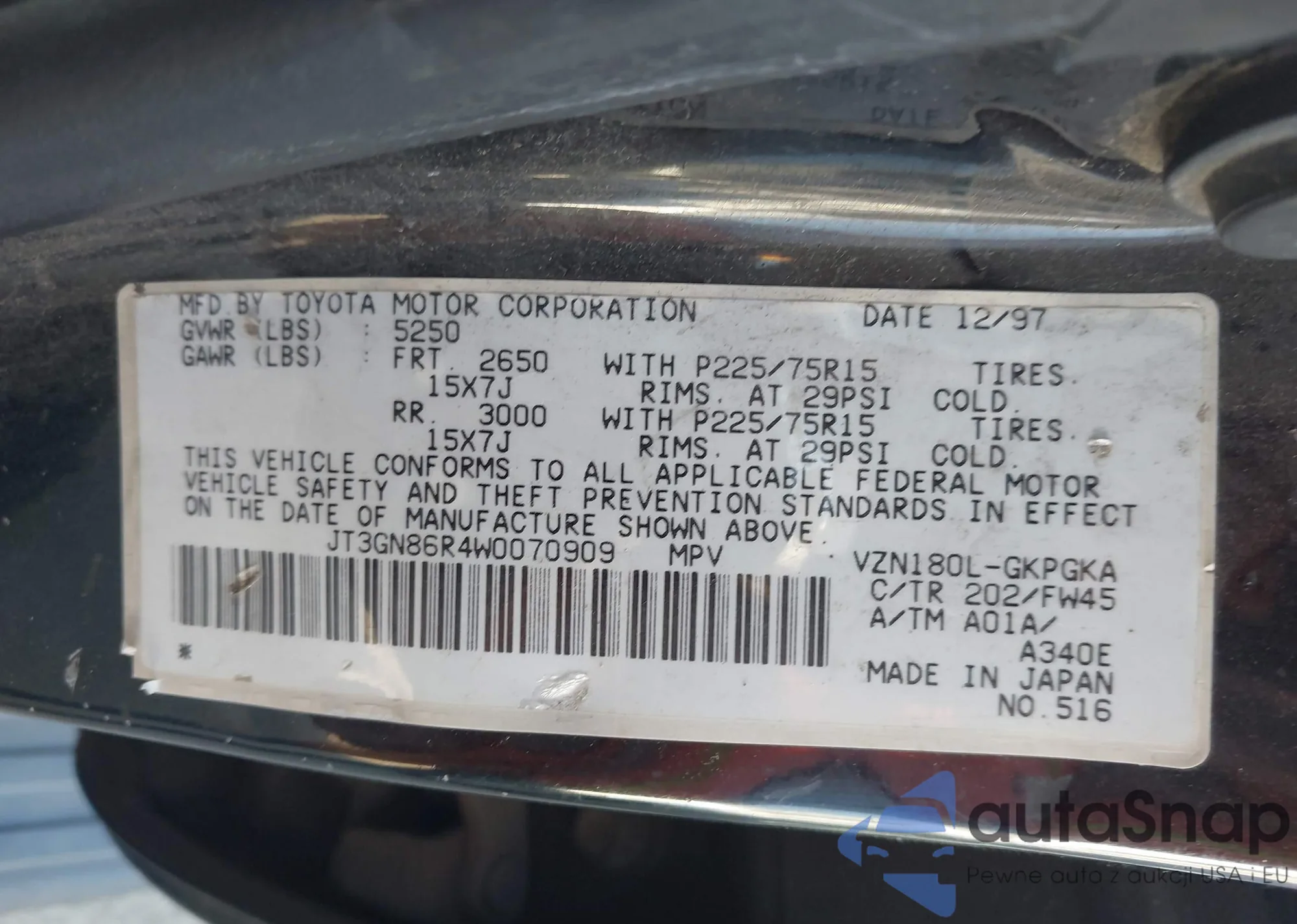 • VIN JT3GN86R4W0070909