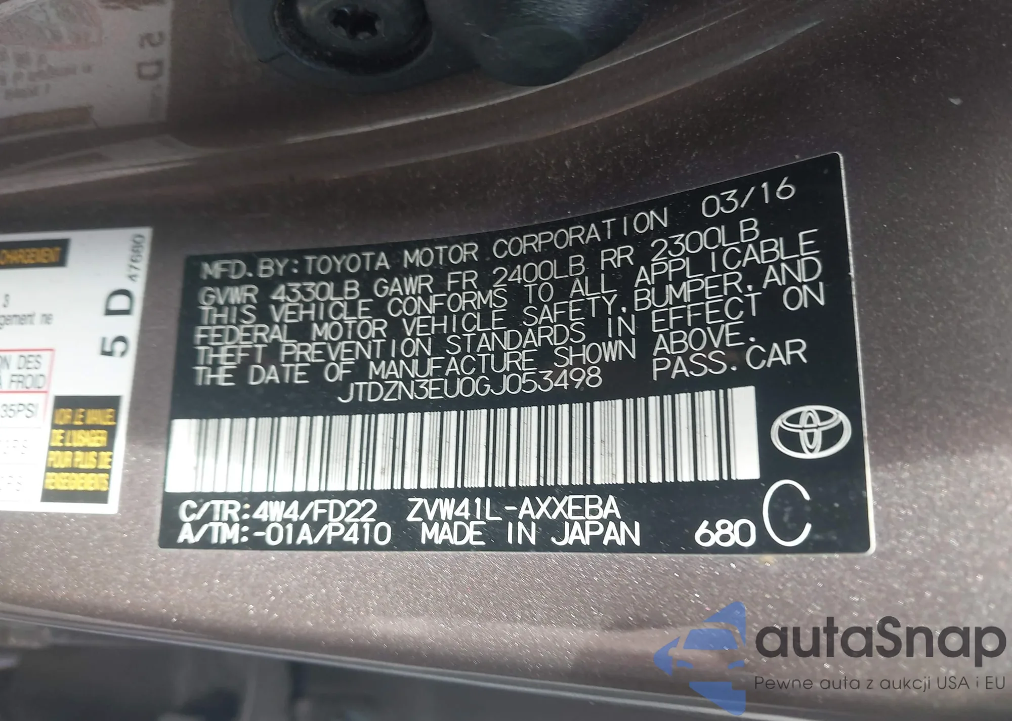 LOT: 44161668 VIN: JTDZN3EU0GJ053498