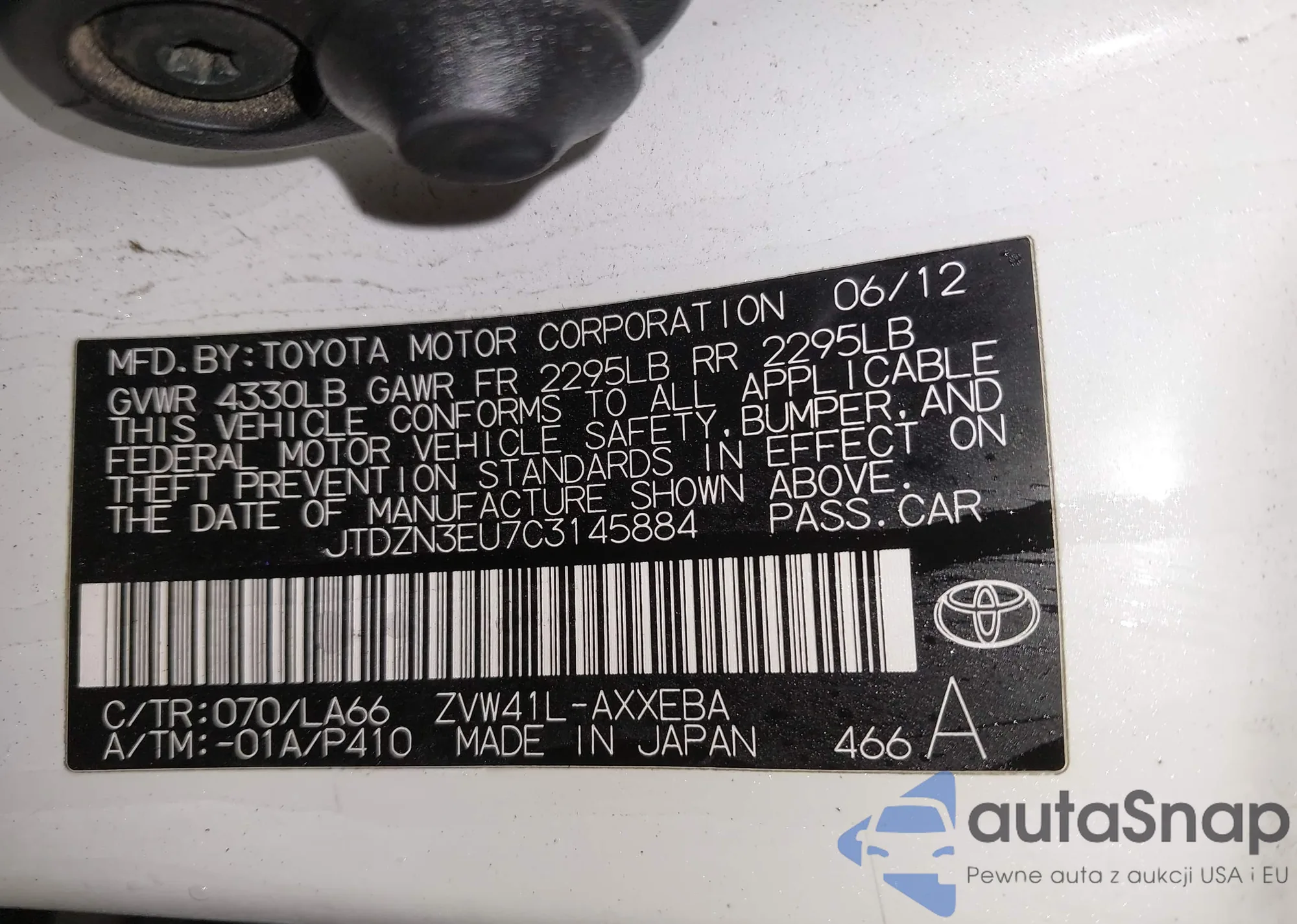 • VIN JTDZN3EU7C3145884