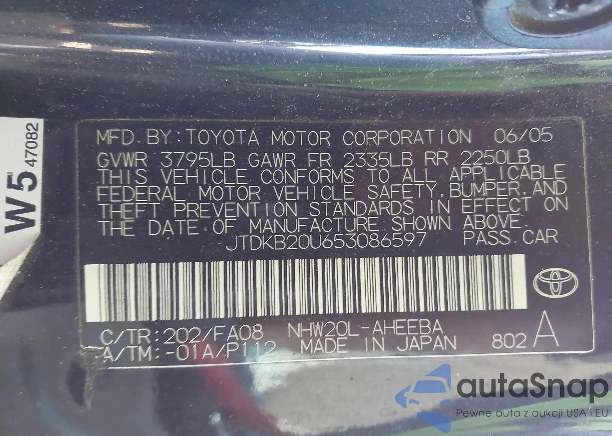 LOT: 44683665 VIN: JTDKB20U653086597