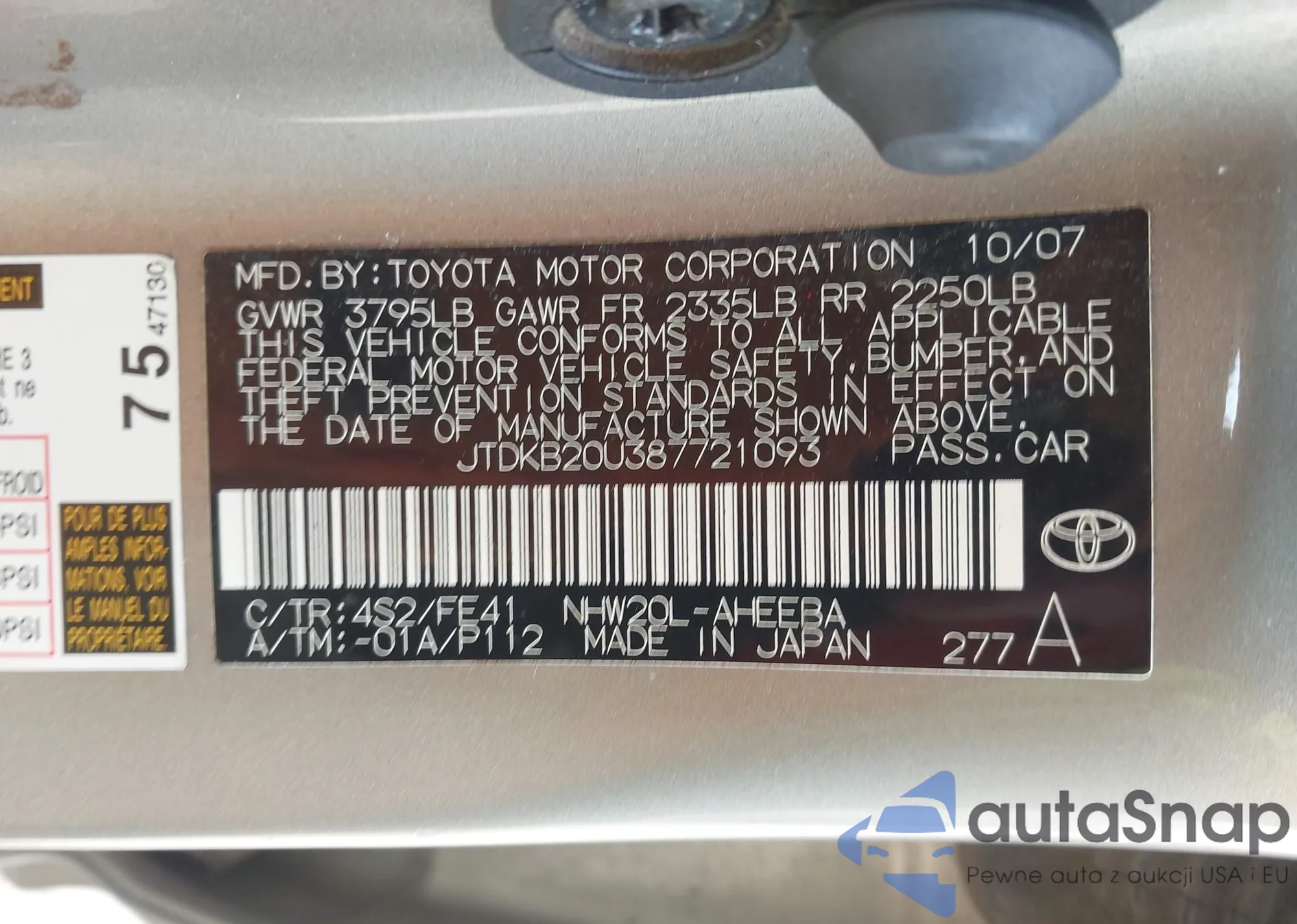 LOT: 44737177 VIN: JTDKB20U387721093