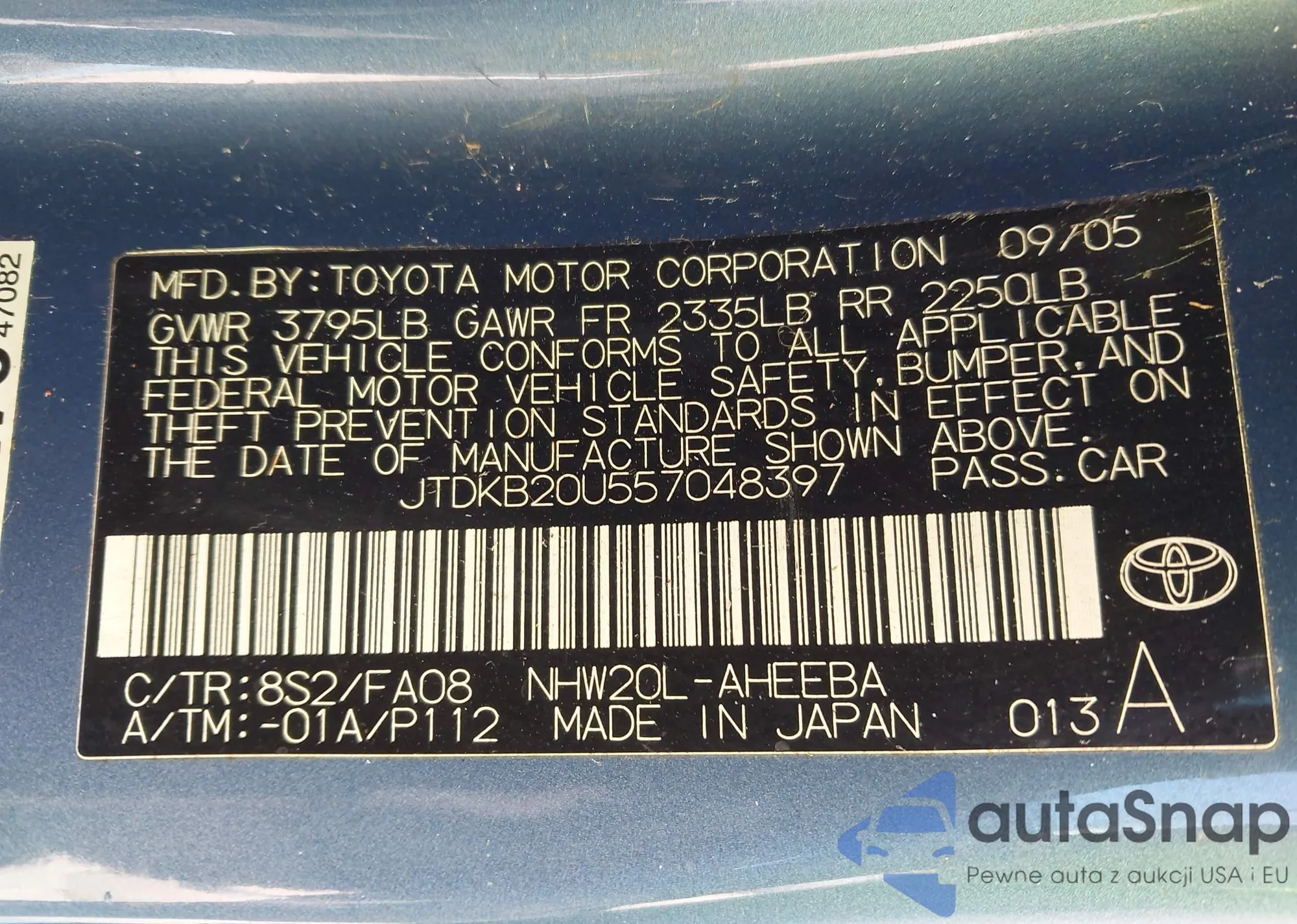 LOT: 44041390 VIN: JTDKB20U557048397