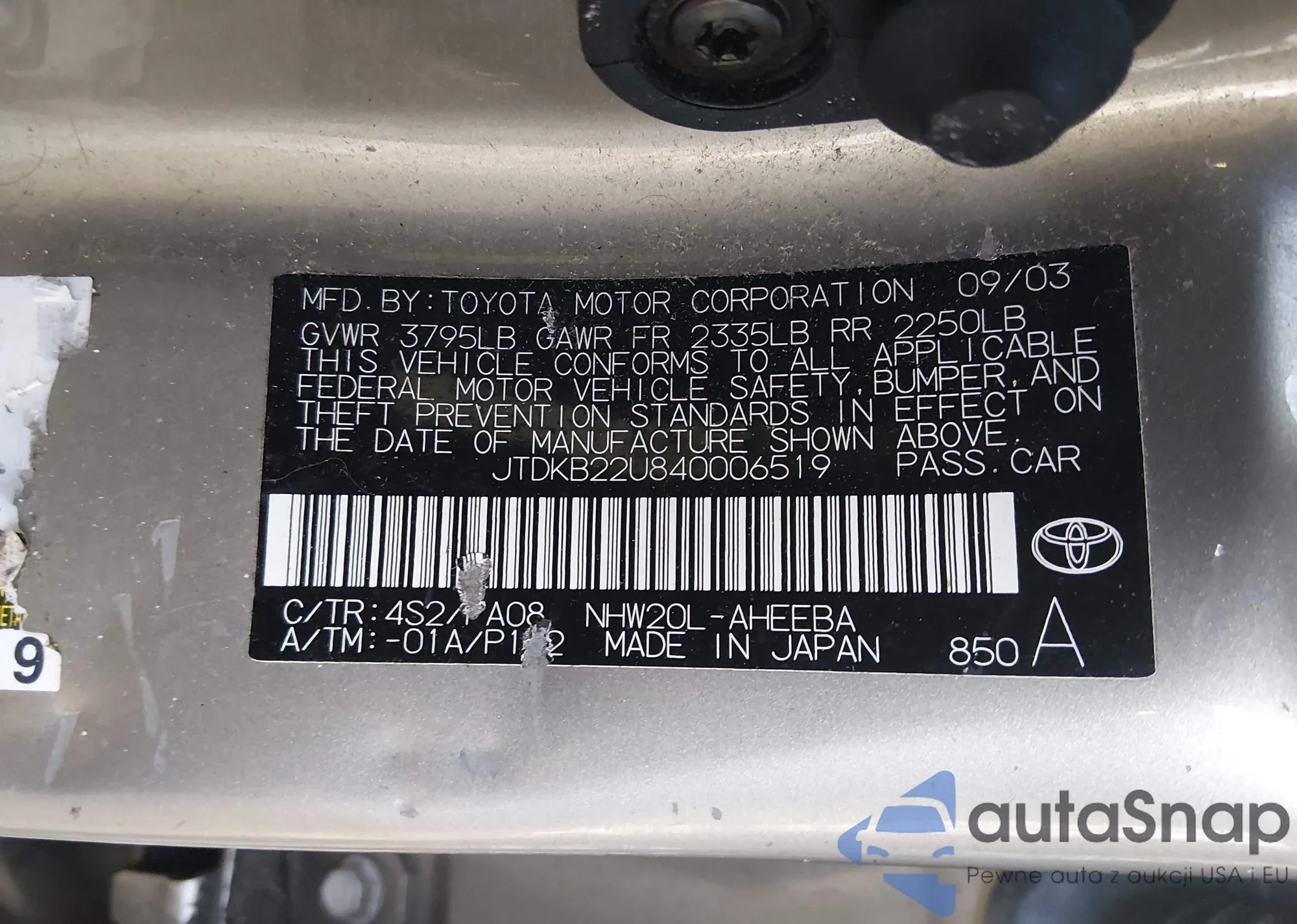 LOT: 44048202 VIN: JTDKB22U840006519