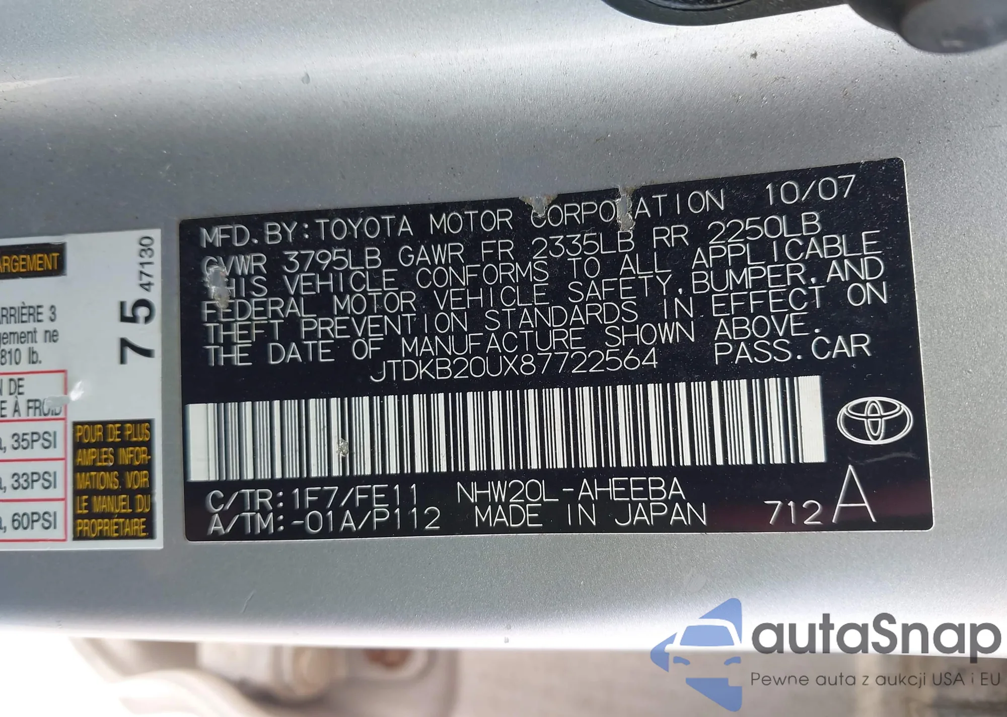 • VIN JTDKB20UX87722564