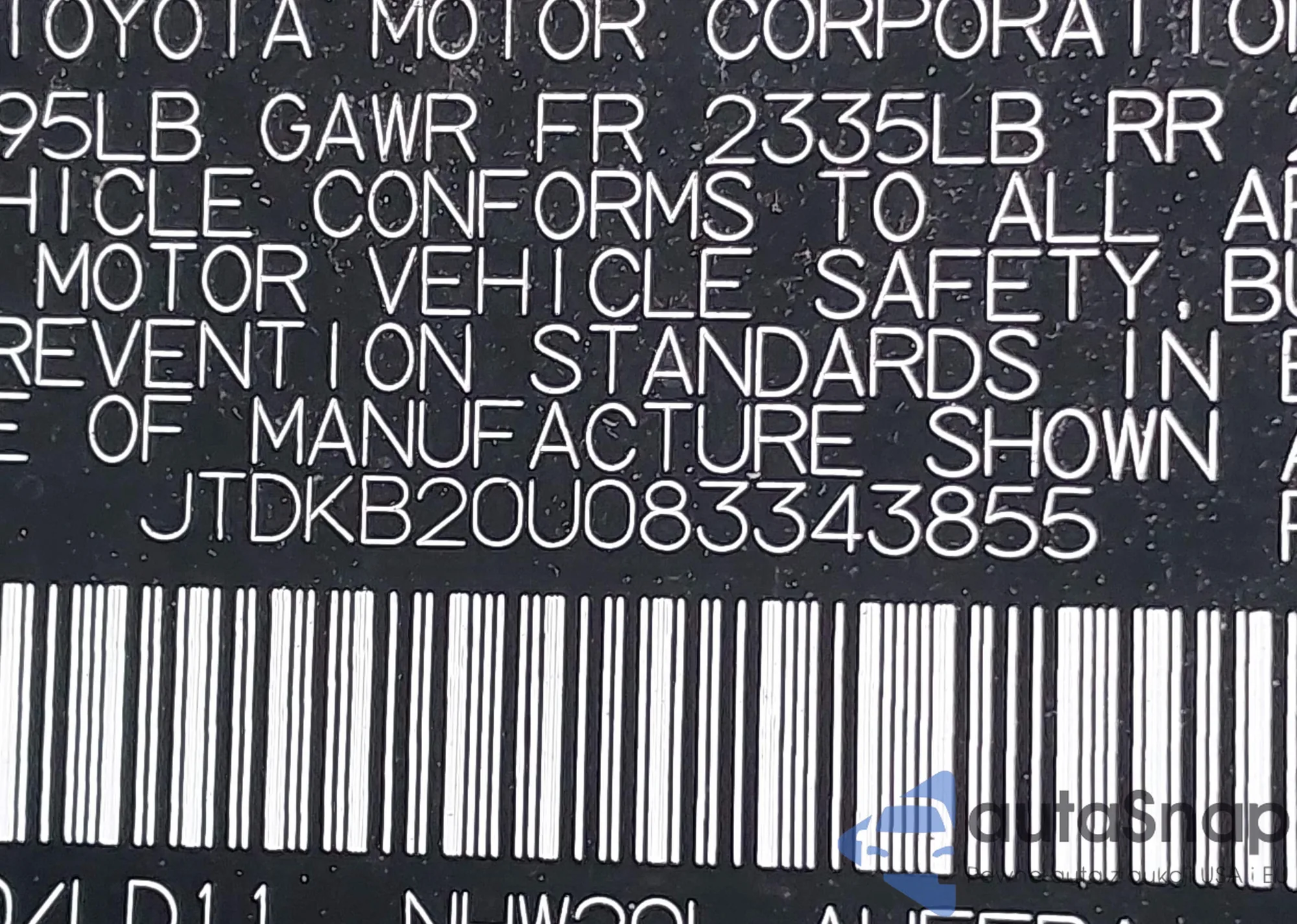 LOT: 44245768 VIN: JTDKB20U083343855