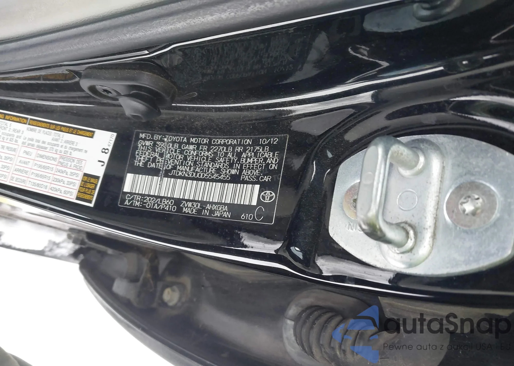 LOT: 75308175 VIN: JTDKN3DU2D5544209