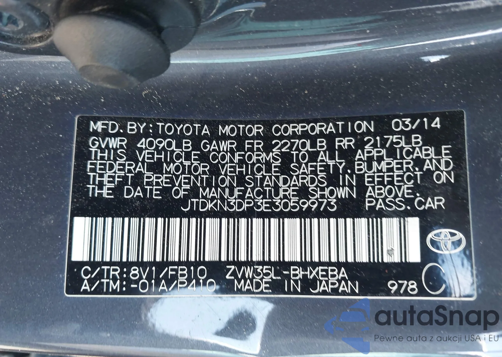 LOT: 42358672 VIN: JTDKN3DP3E3059973