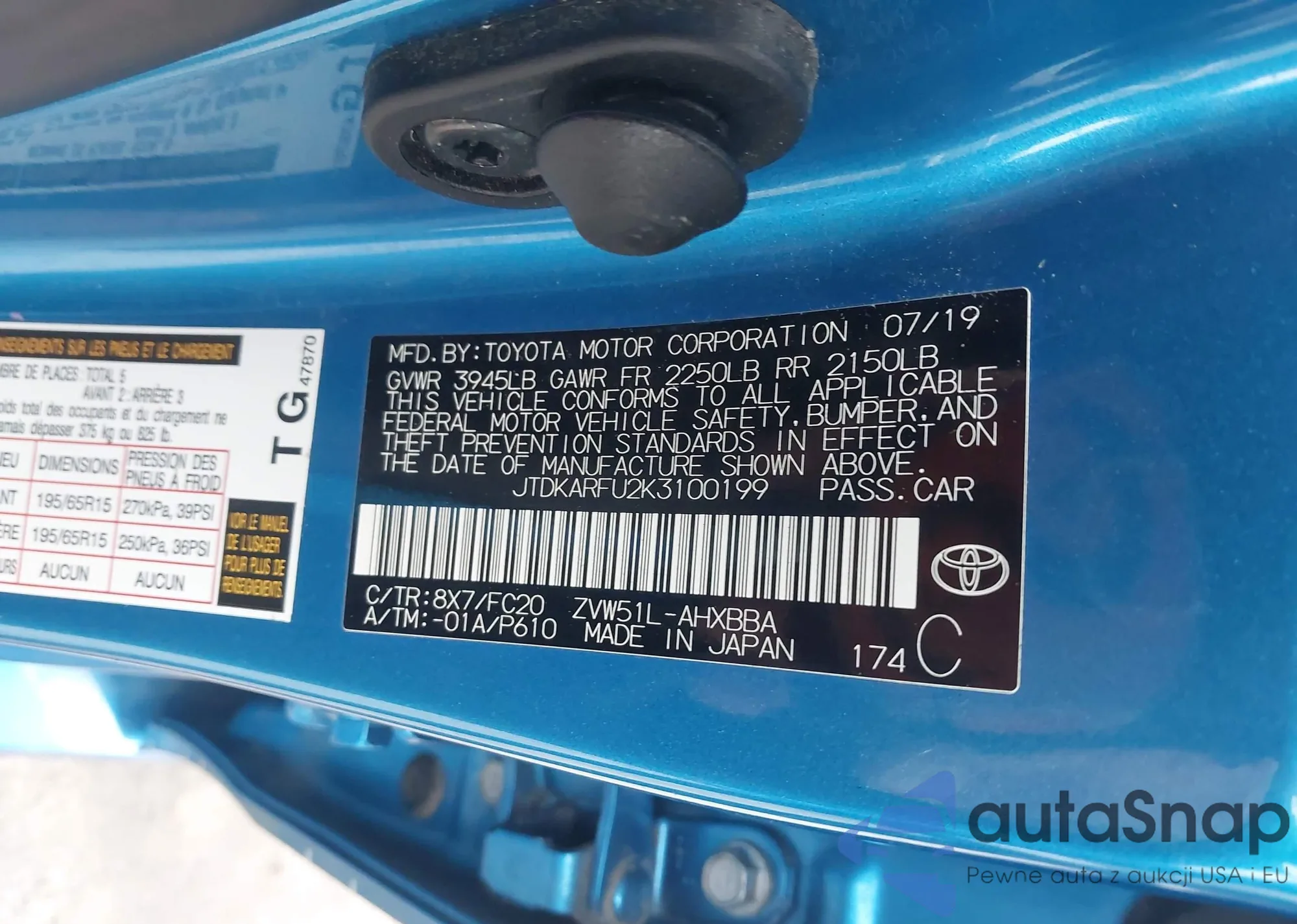 LOT: 93391565 VIN: JTDKARFP7H3004796
