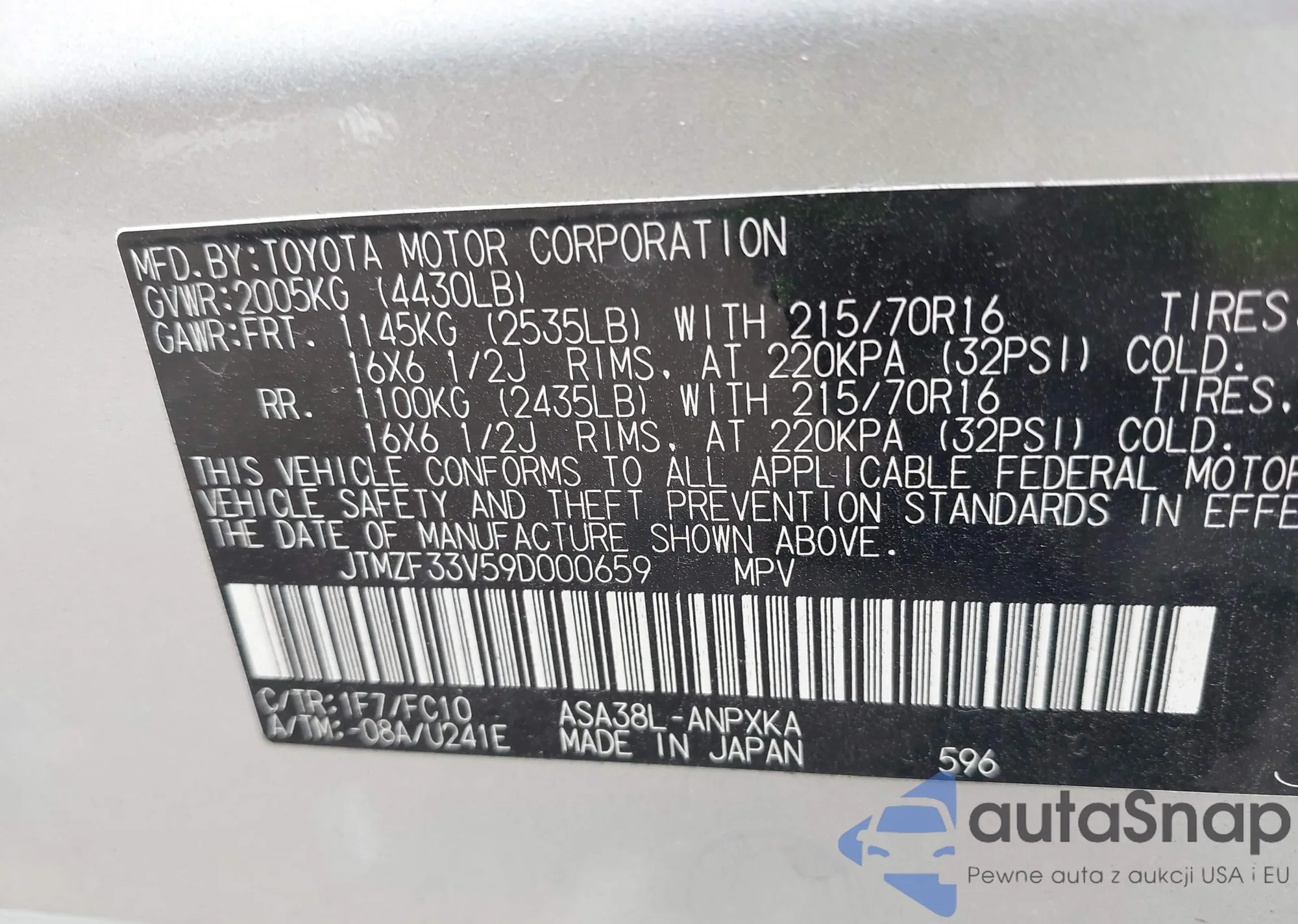 LOT: 42965788 VIN: JTMZF33V59D000659