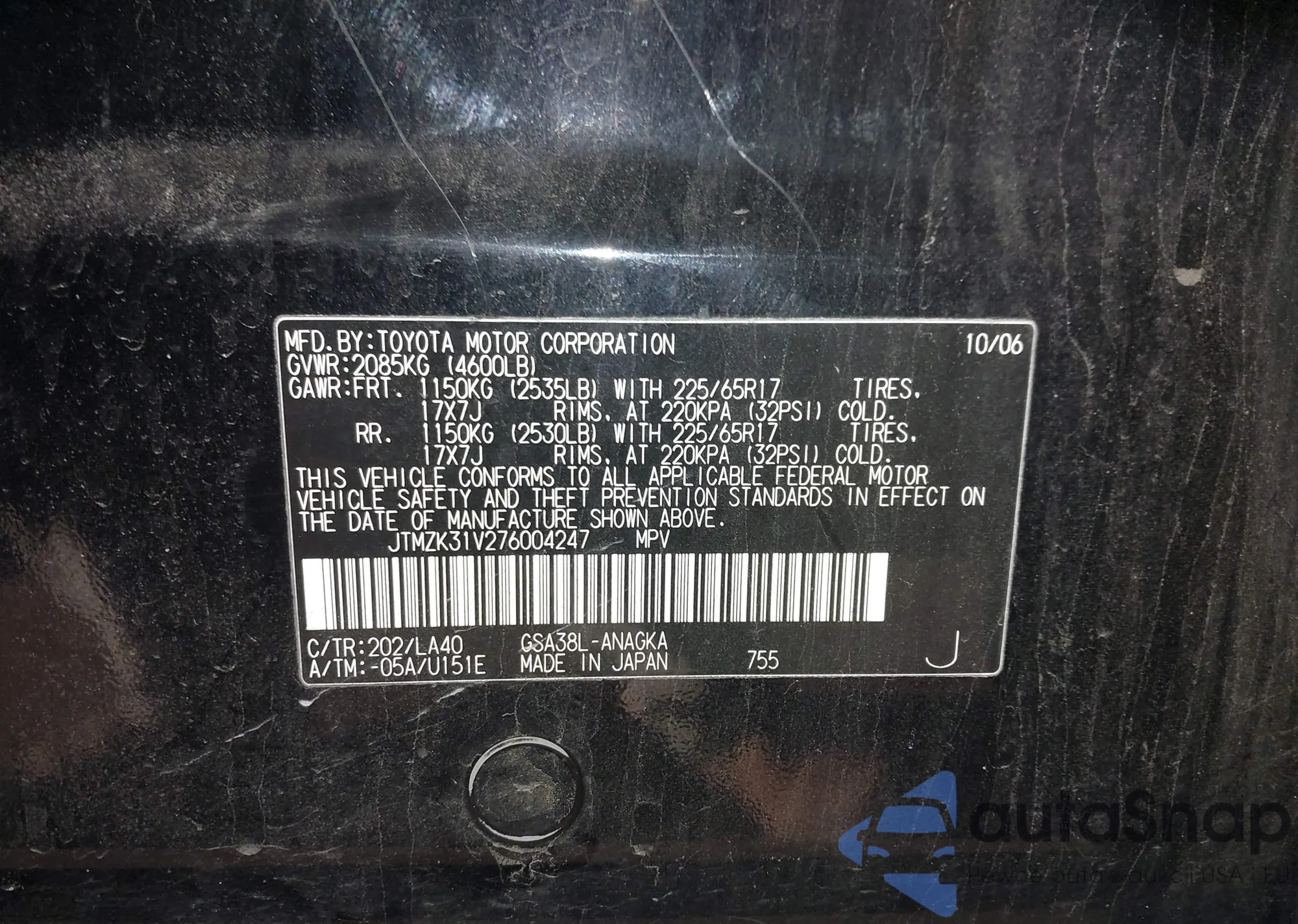 • VIN JTMZK31V276004247