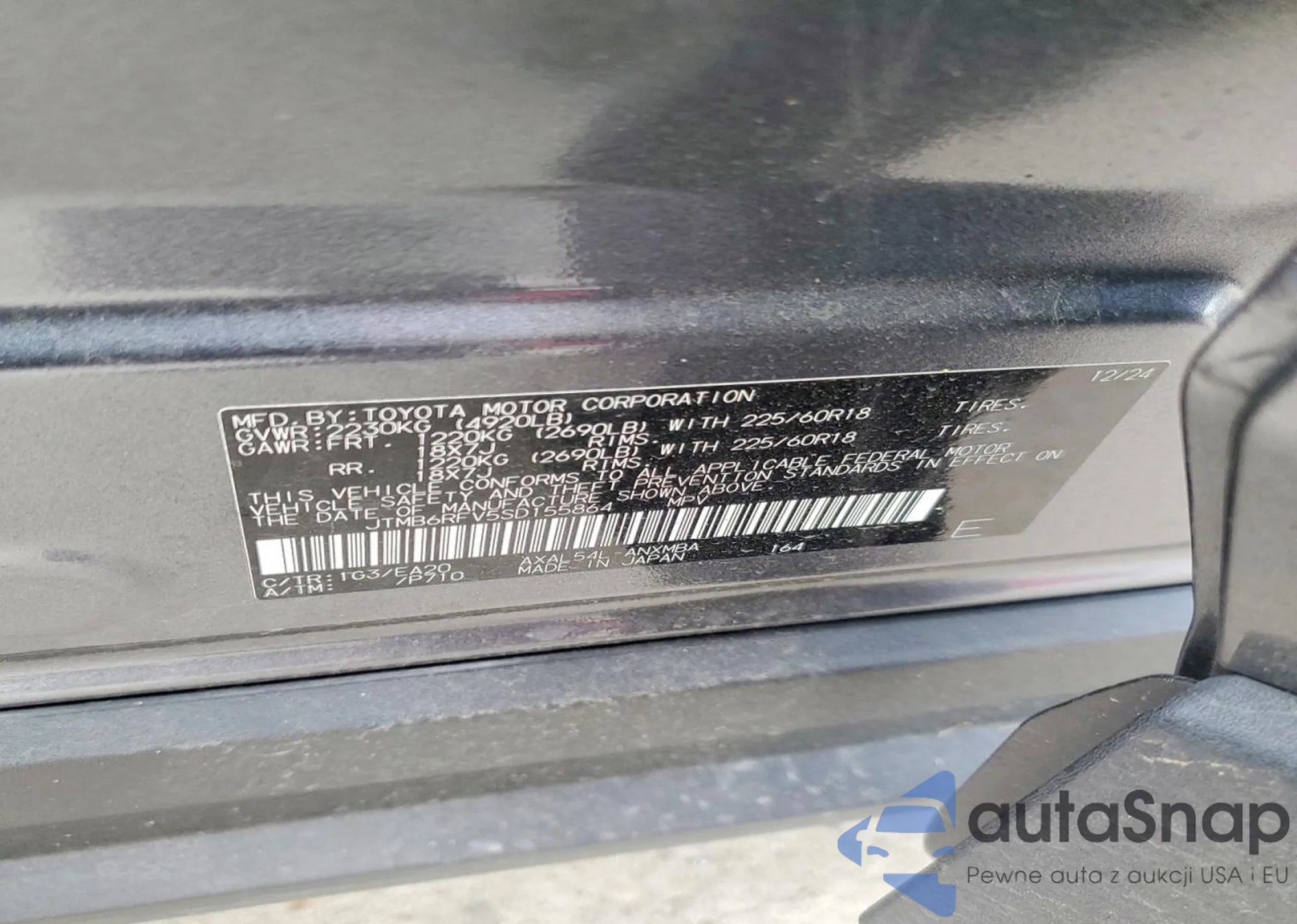• VIN JTMB6RFV5SD155864