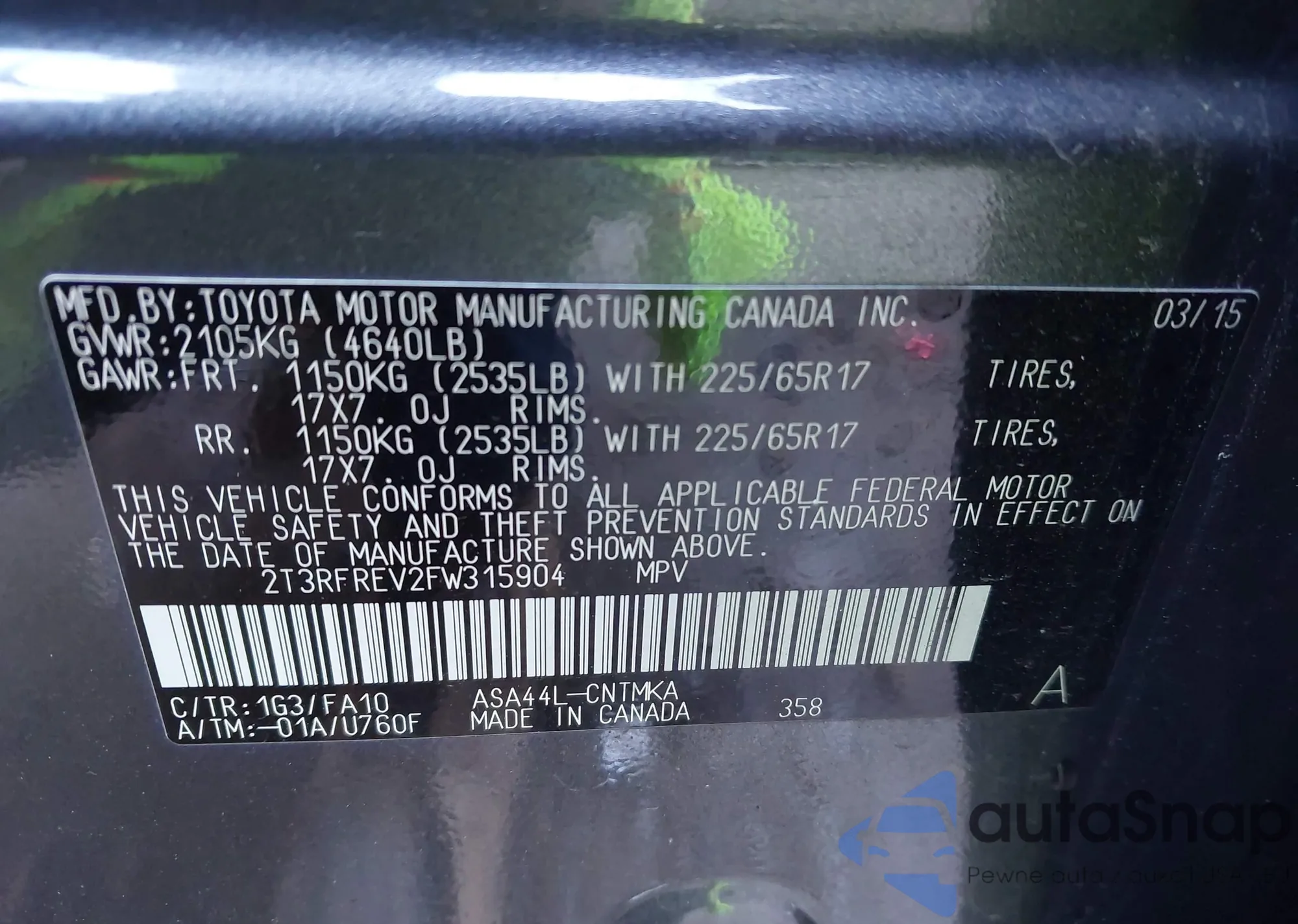 • VIN 2T3RFREV2FW315904