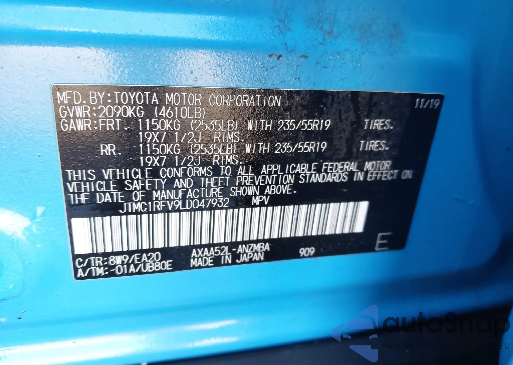 • VIN JTMC1RFV9LD047932