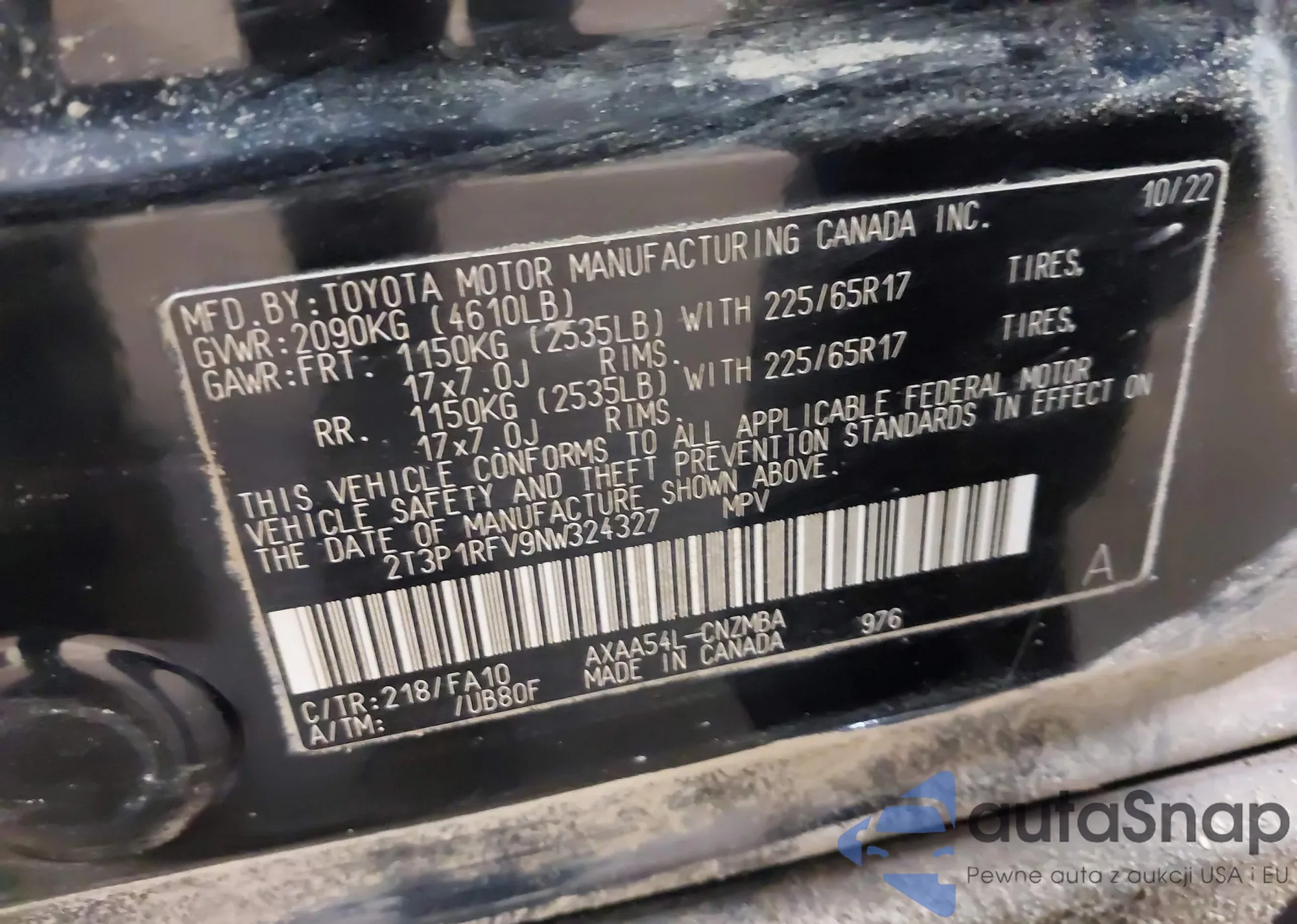 • VIN 2T3P1RFV9NW324327