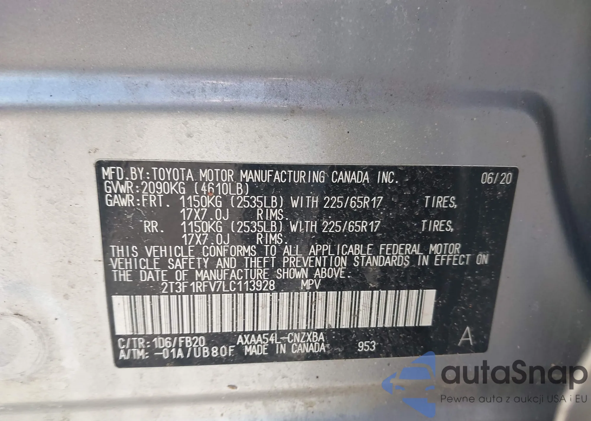 LOT: 44683602 VIN: 2T3W1RFV1LW095019