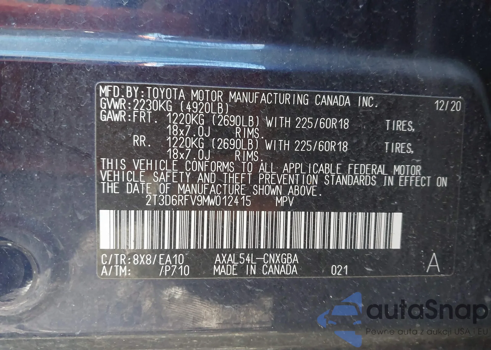 • VIN 2T3P1RFV8MC218290