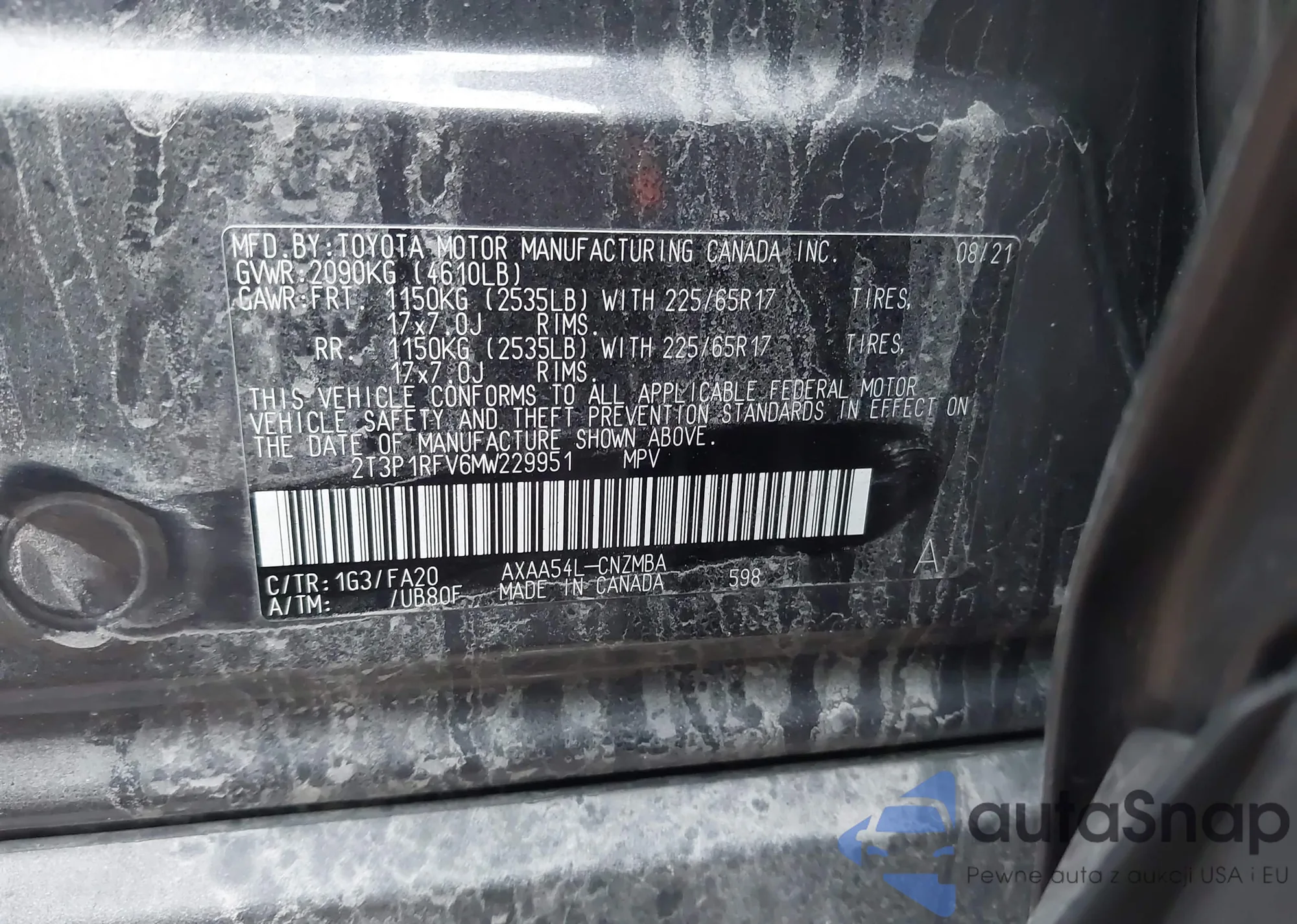 LOT: 76870645 VIN: 2T3W1RFV5MW161282