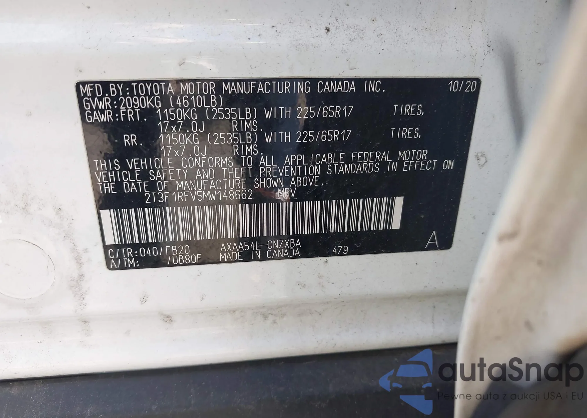 LOT: 43869307 VIN: JTMLWRFV3MD129867