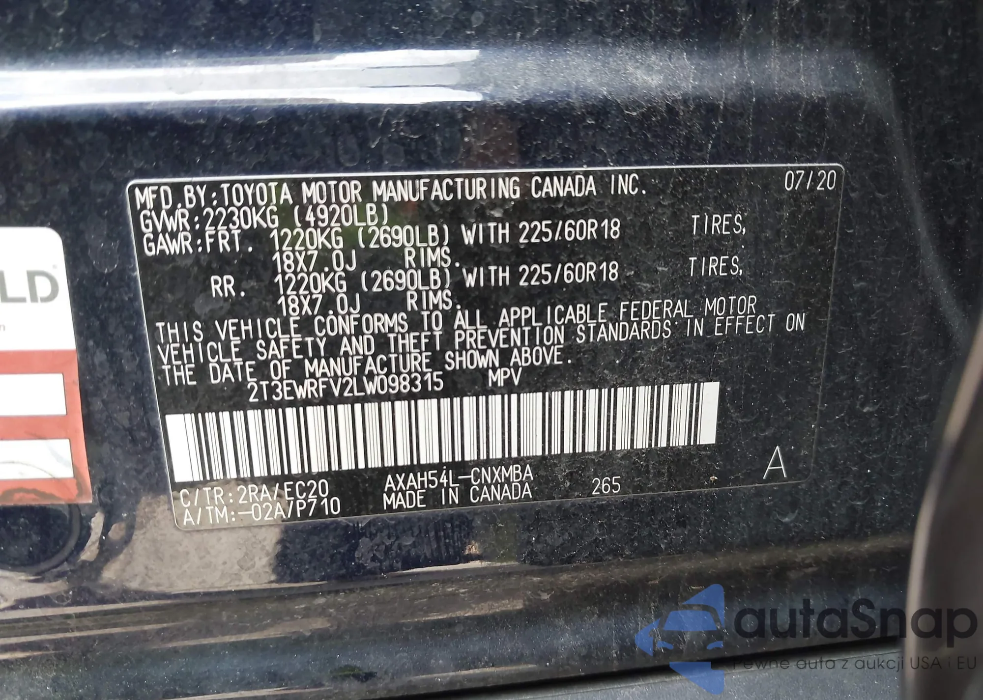 LOT: 44033906 VIN: 2T3EWRFV2LW098315
