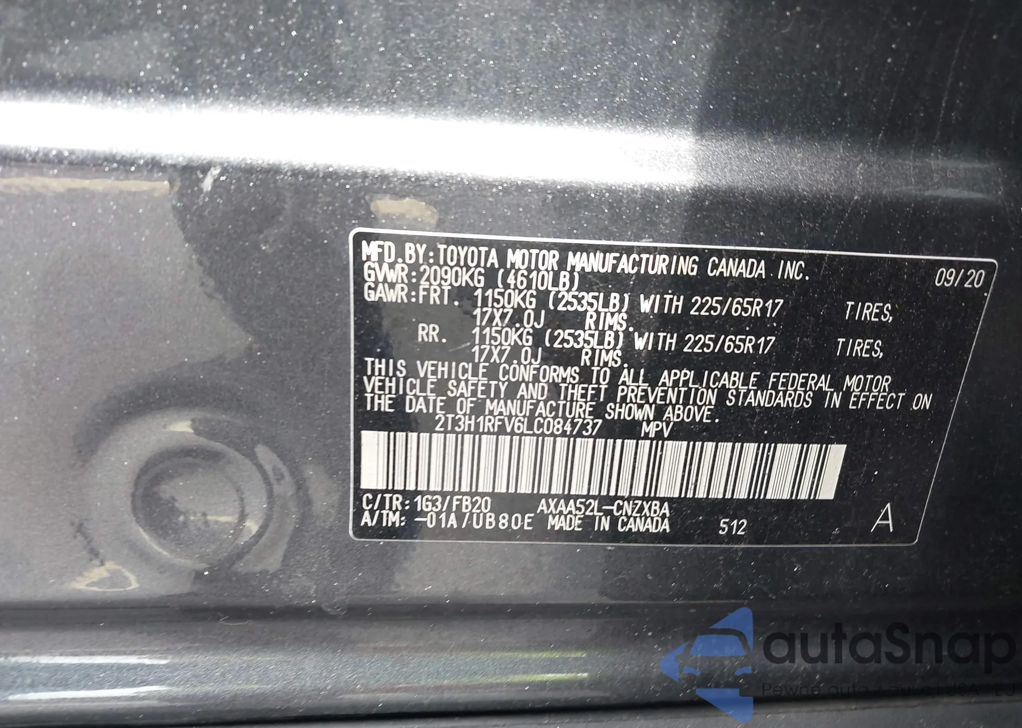 LOT: 43596190 VIN: 2T3H1RFV6LC084737