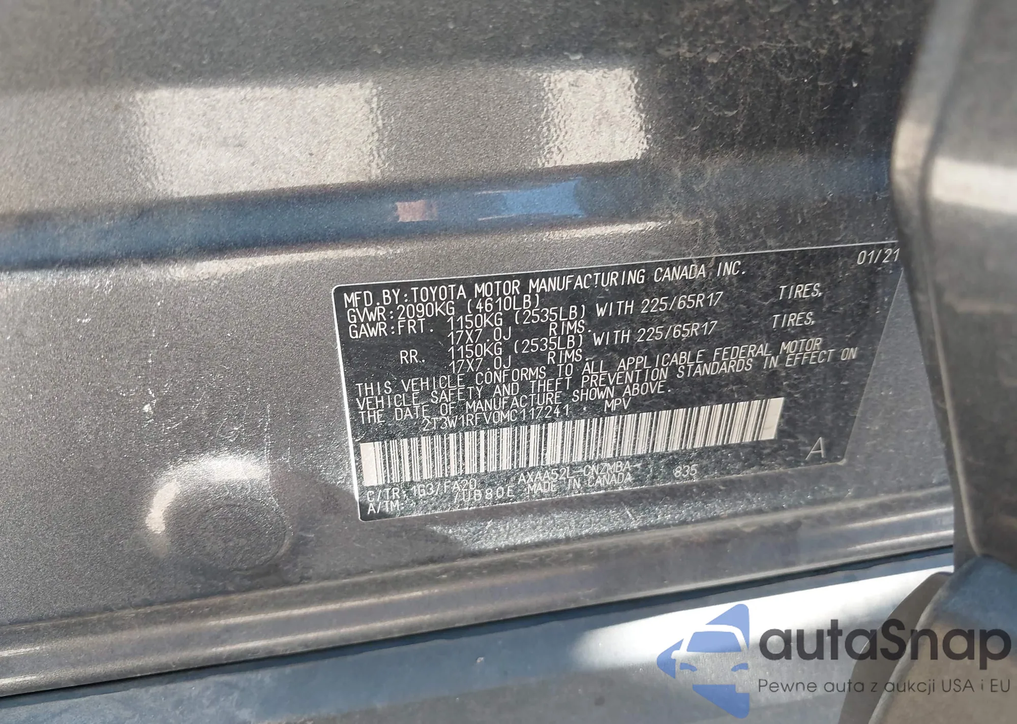 • VIN 2T3W1RFV0MC117241