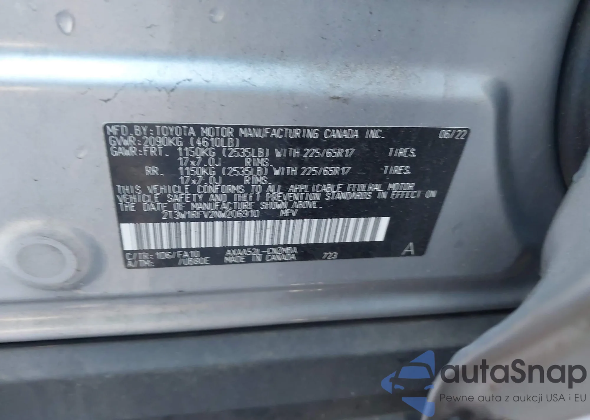 • VIN 2T3W1RFV2NW206910