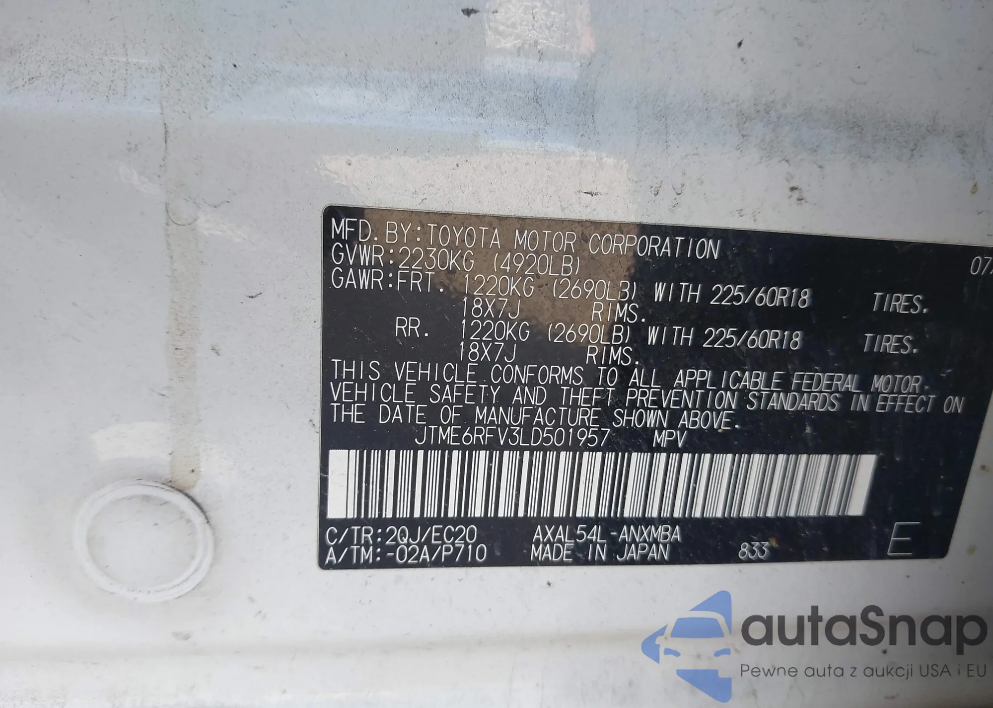 LOT: 43977112 VIN: JTMRWRFV3LD547094