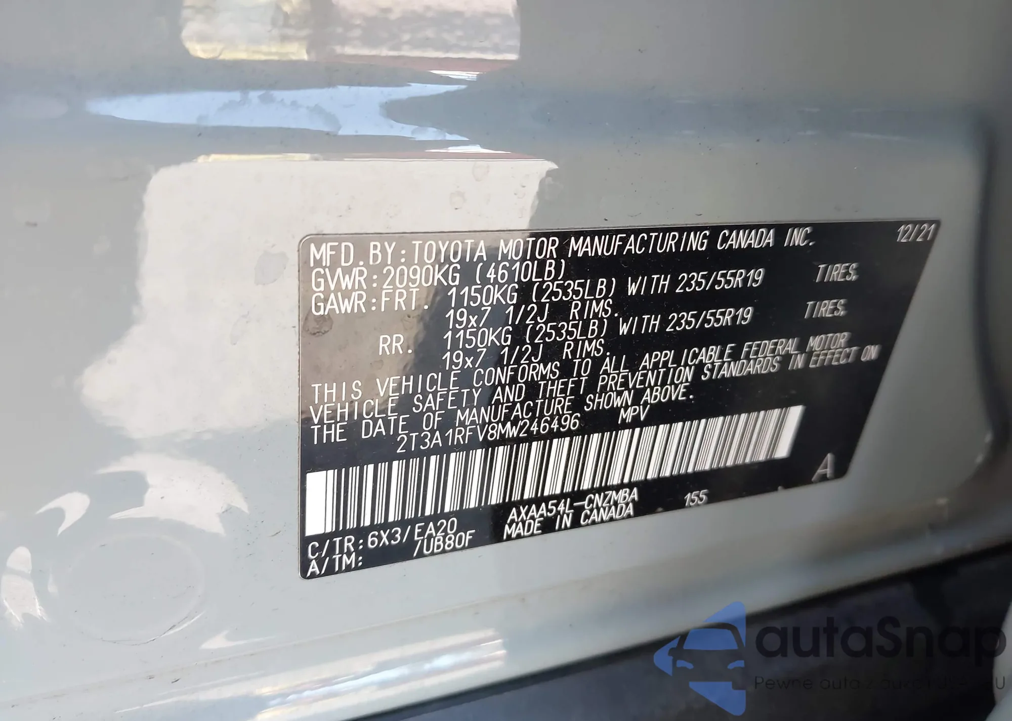LOT: 43899878 VIN: 2T3A1RFV8MW246496