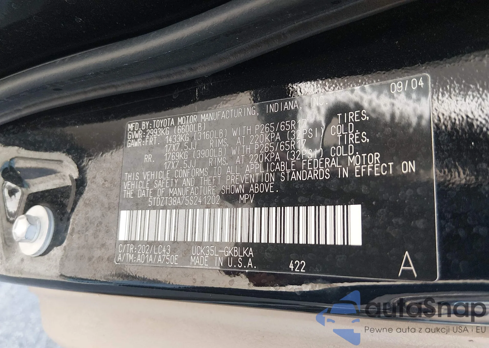 LOT: 44549673 VIN: 5TDZT38A75S241202