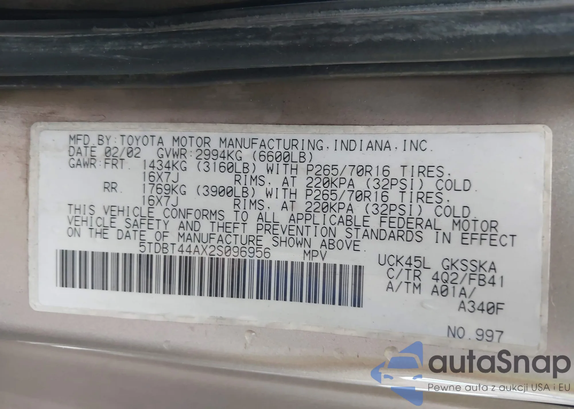 • VIN 5TDBT44AX2S096956
