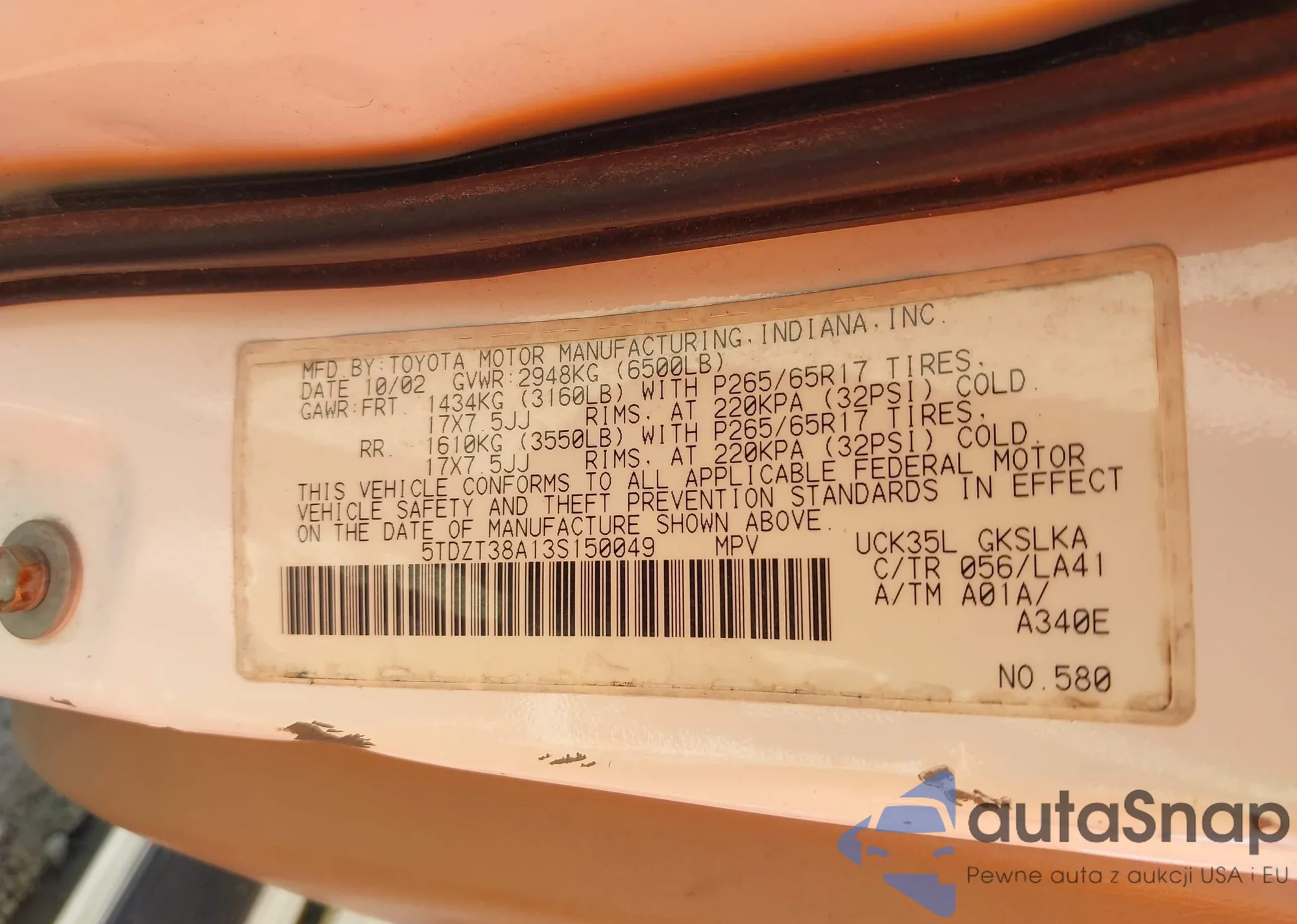LOT: 44581831 VIN: 5TDZT38A13S150049