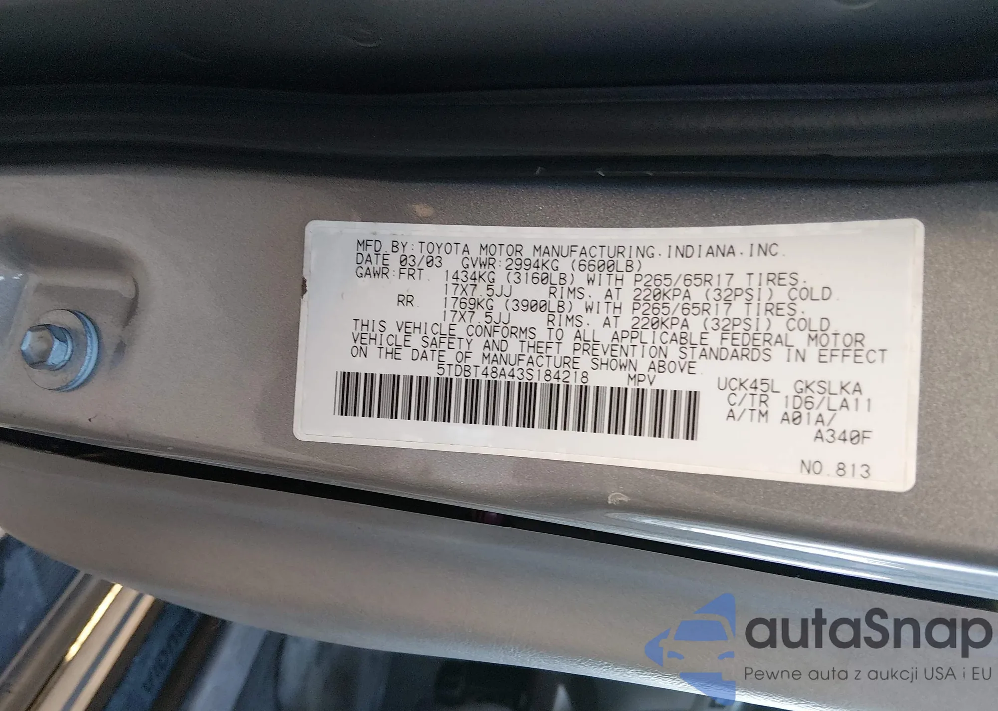 LOT: 44130906 VIN: 5TDBT48A43S184218
