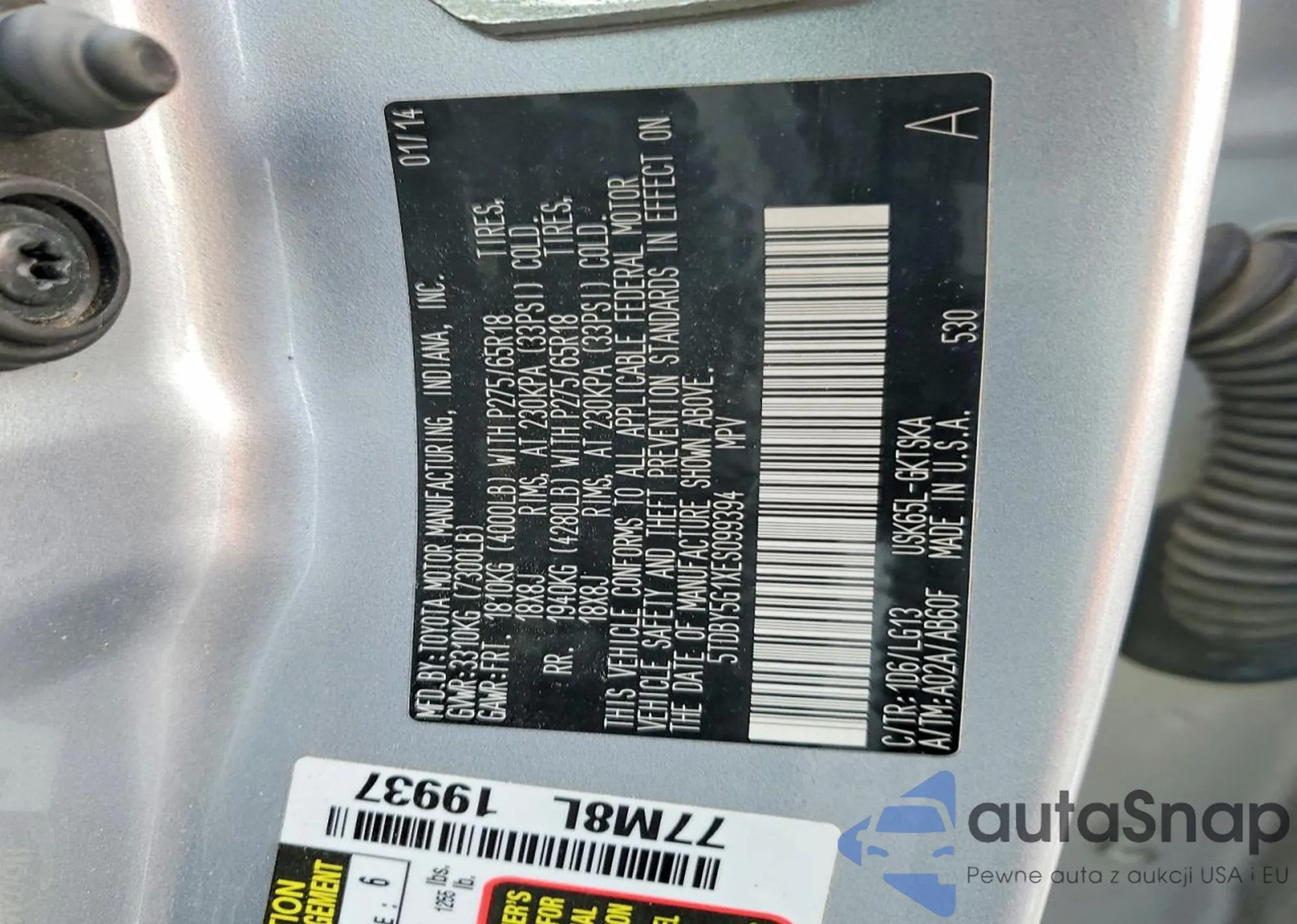 LOT: 43871118 VIN: 5TDDW5G10ES104780