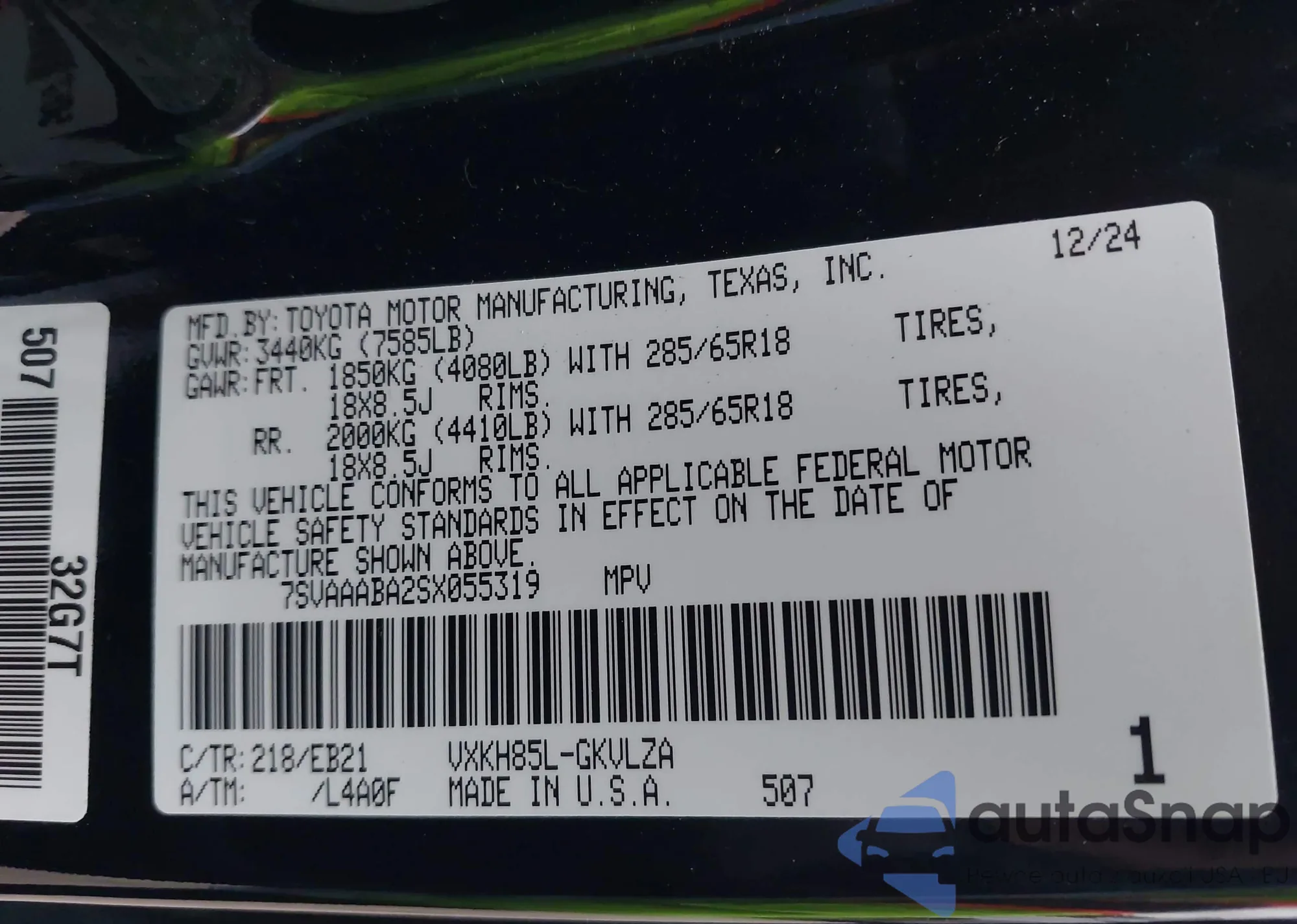 • VIN 7SVAAABA2SX055319