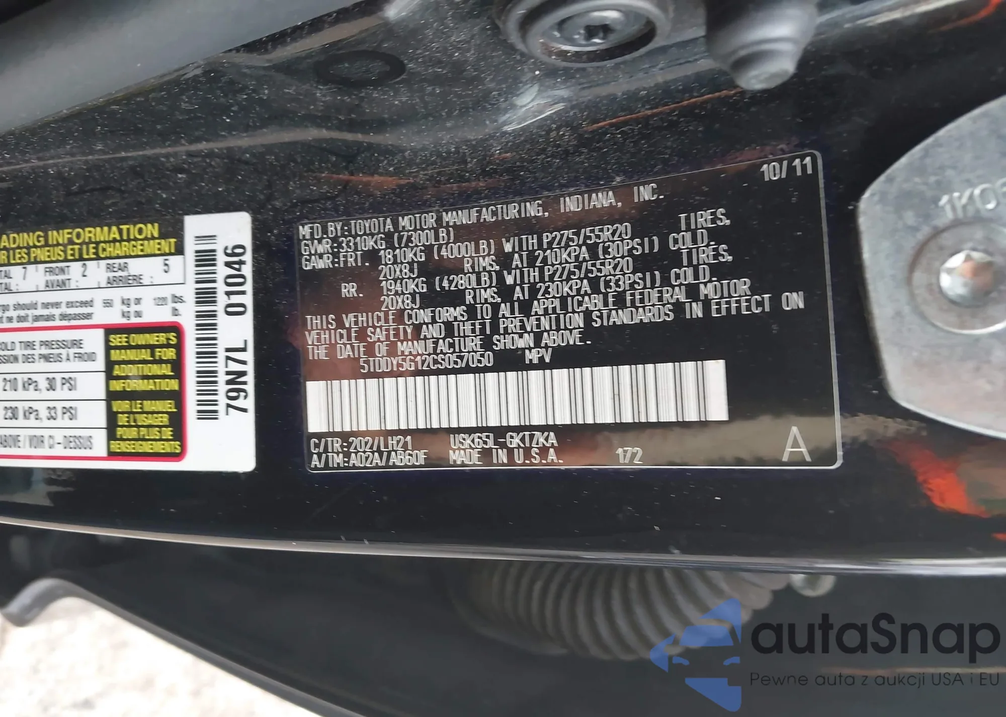 LOT: 44167809 VIN: 5TDDY5G12CS057050