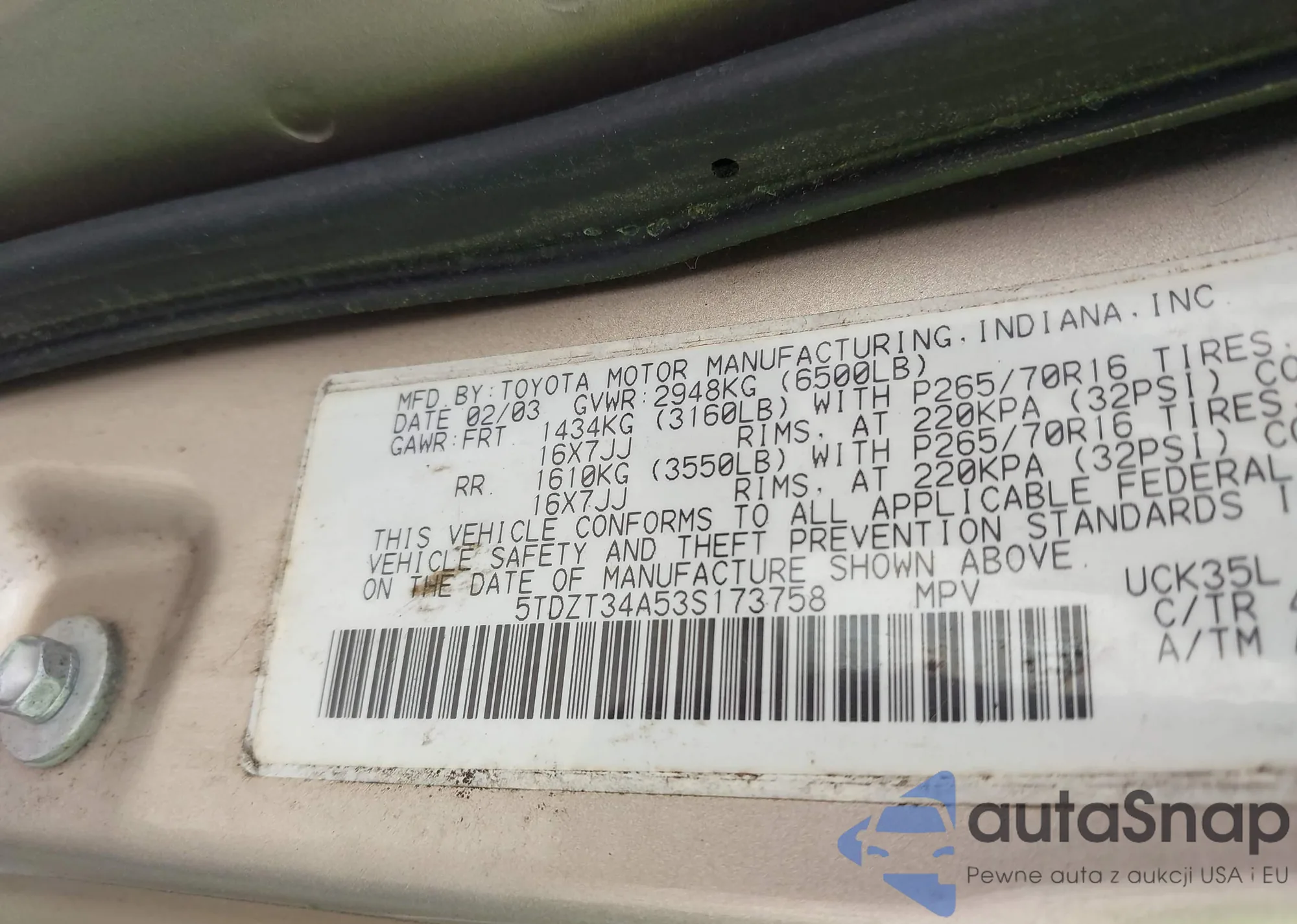 • VIN 5TDZT34A53S173758