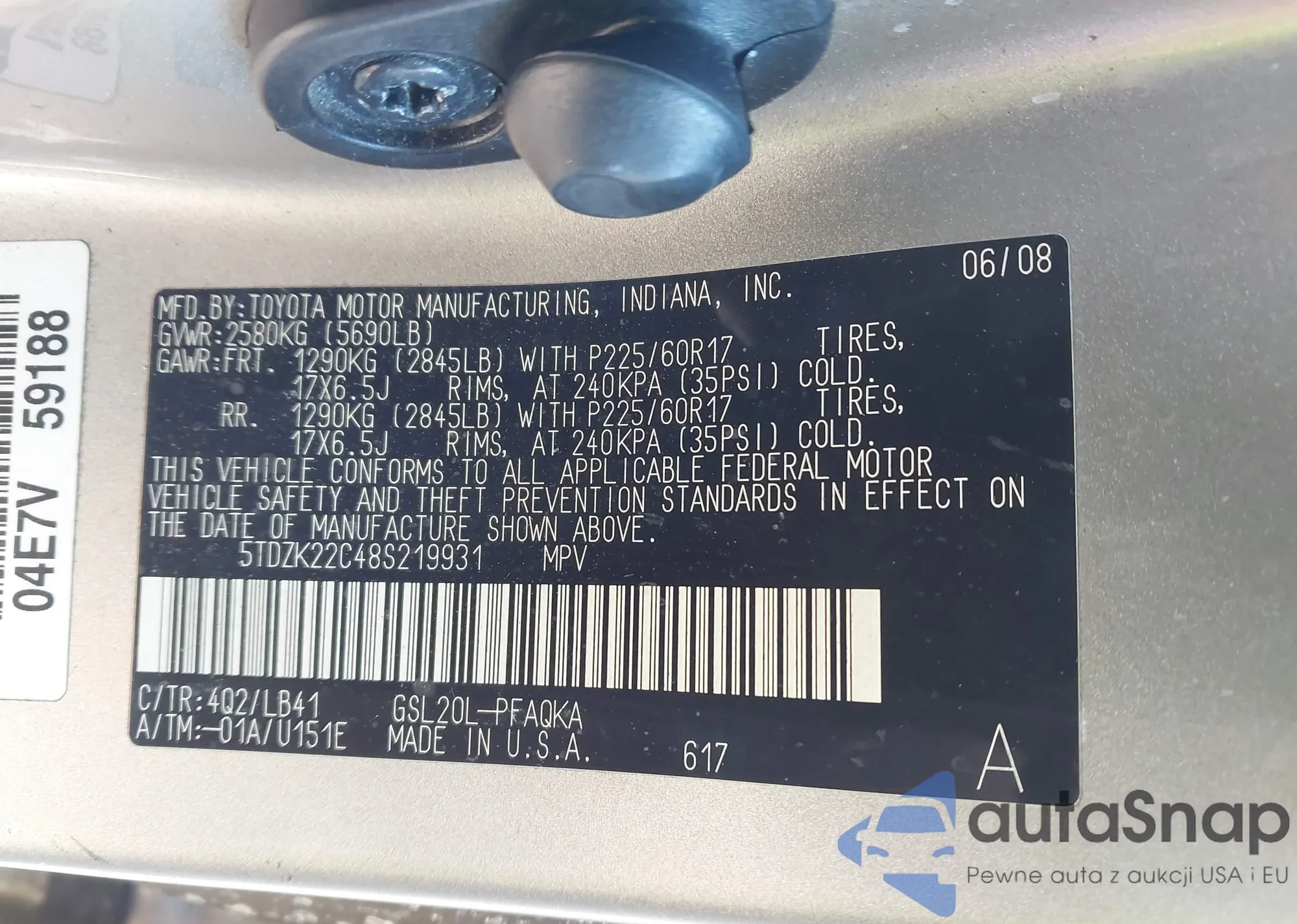 LOT: 44279771 VIN: 5TDZK22C48S219931