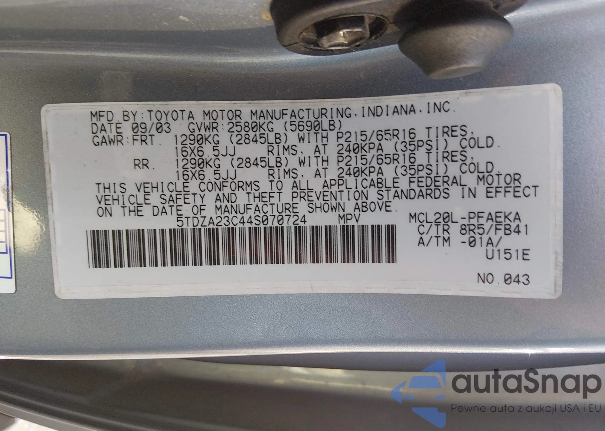 LOT: 44604448 VIN: 5TDZA23C44S070724